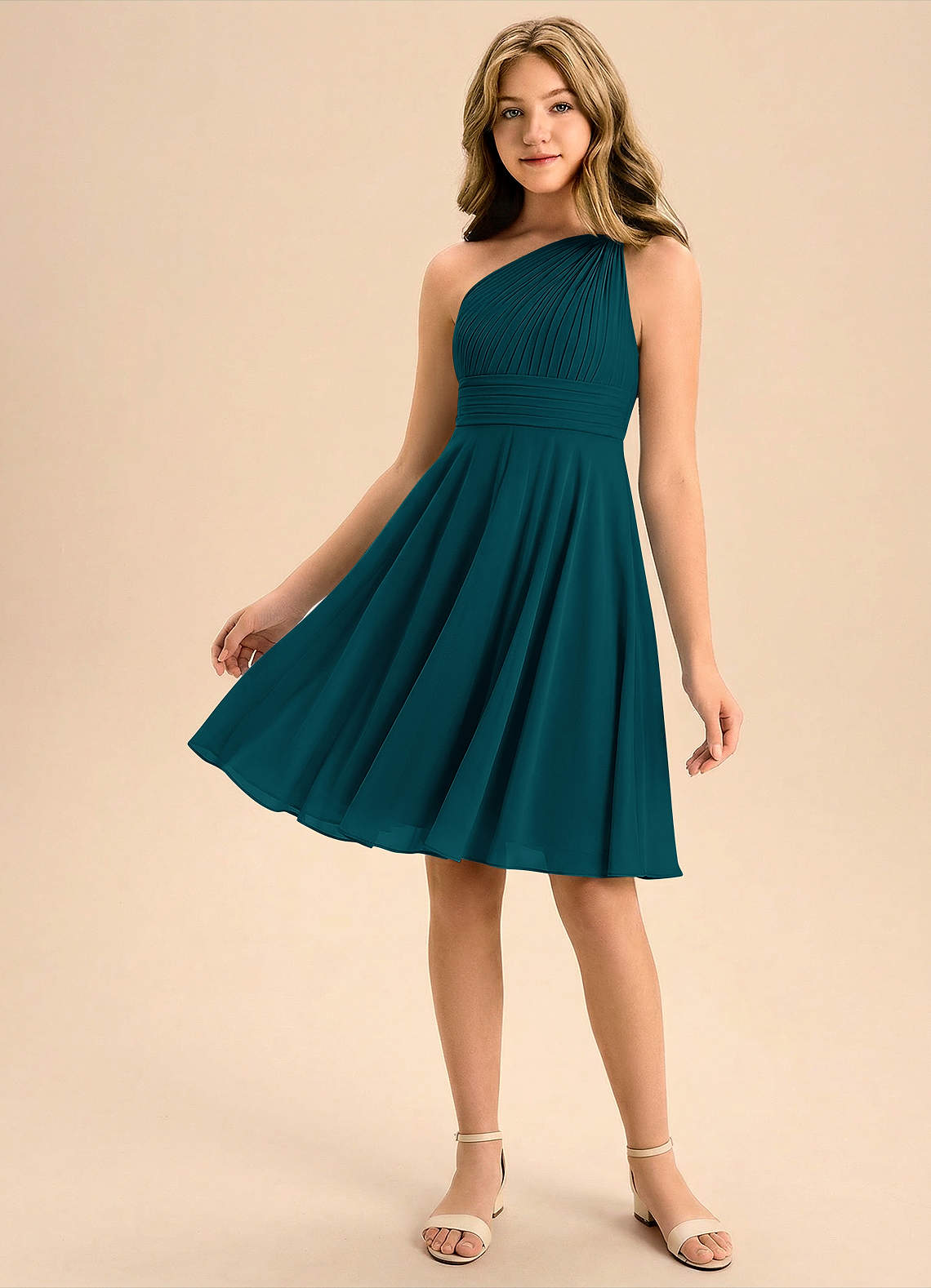 Linia A Pofałdowany Szyfon Mini Młodsza druhna Sukienka