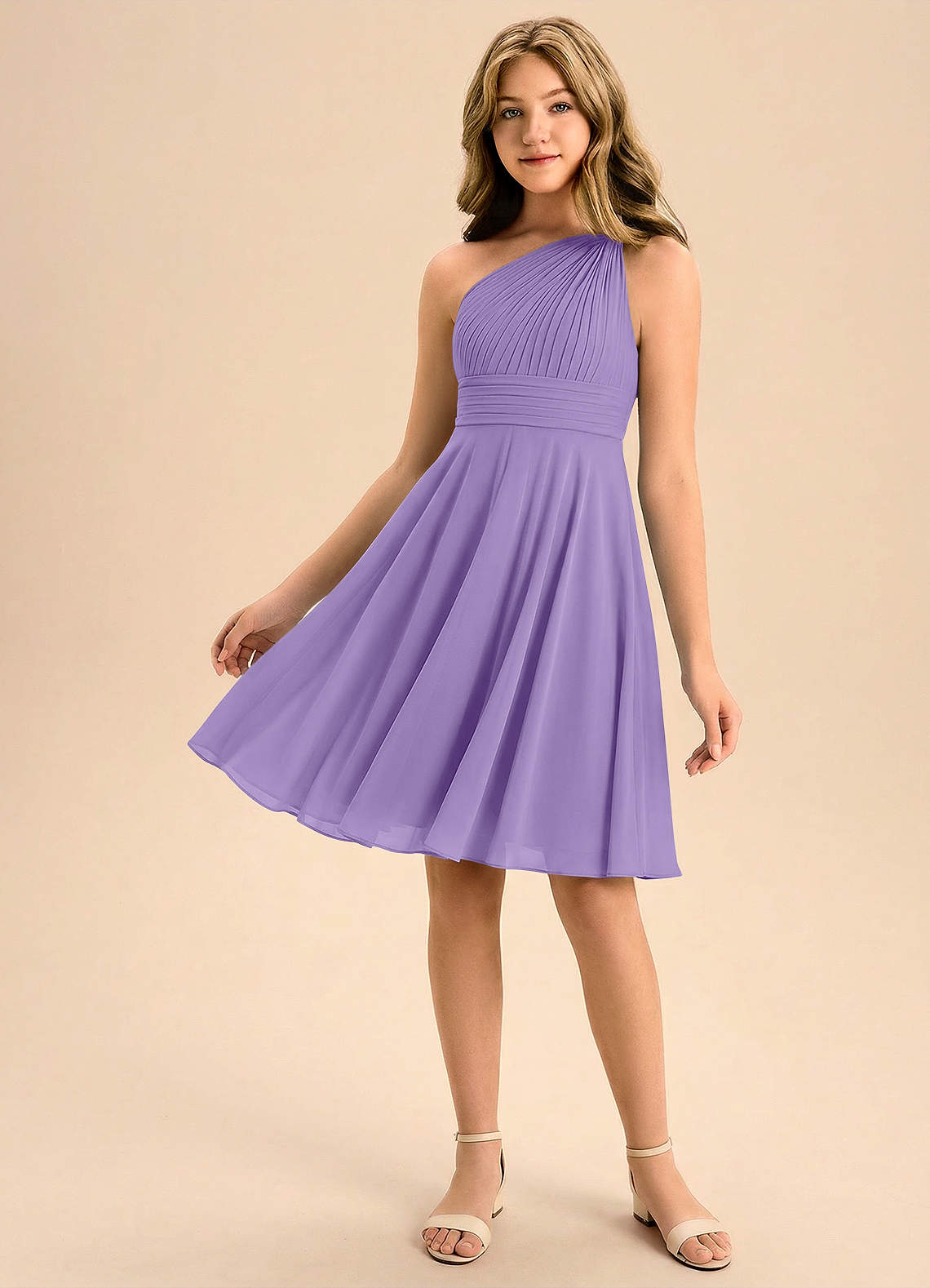 Linia A Pofałdowany Szyfon Mini Młodsza druhna Sukienka