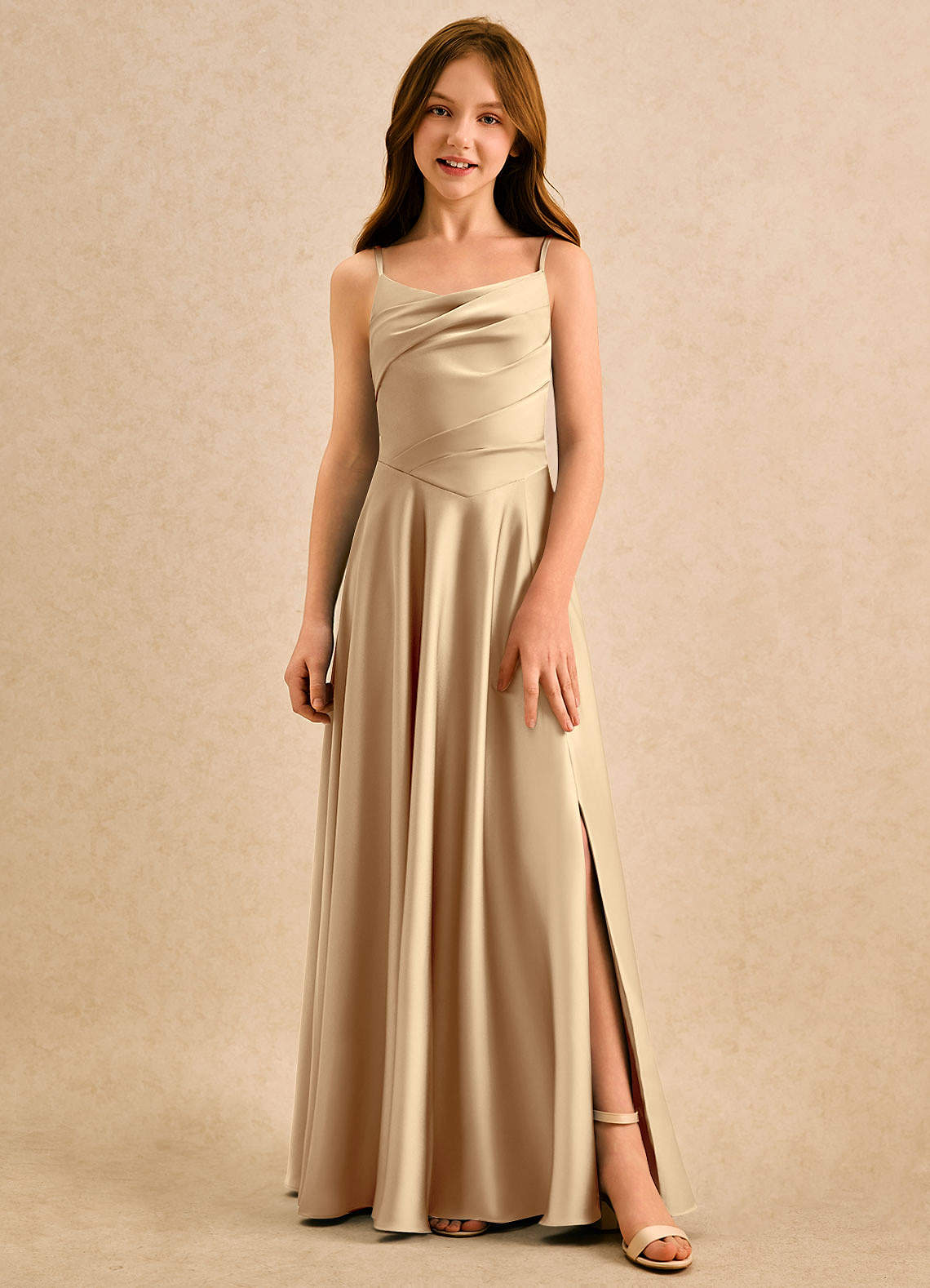 Linia A Pofałdowany Satyna elastyczna Długość podłogi Sukienka