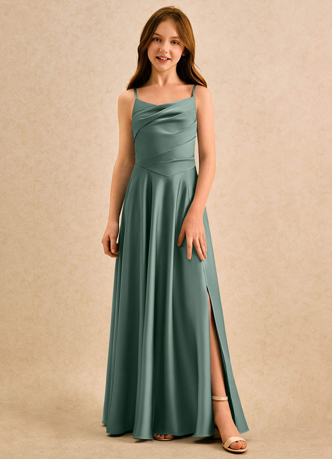 Linia A Pofałdowany Satyna elastyczna Długość podłogi Sukienka