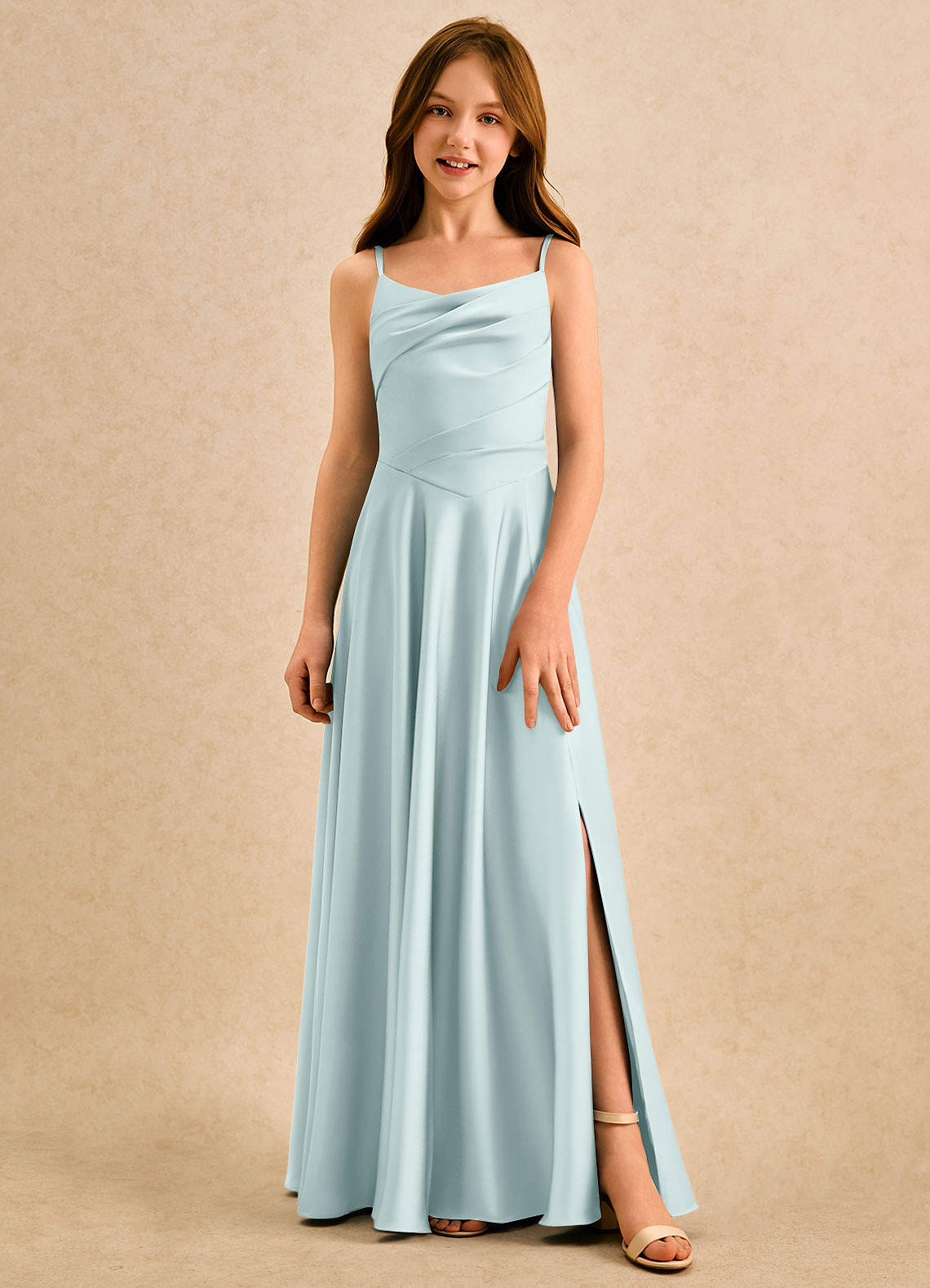 Linia A Pofałdowany Satyna elastyczna Długość podłogi Sukienka