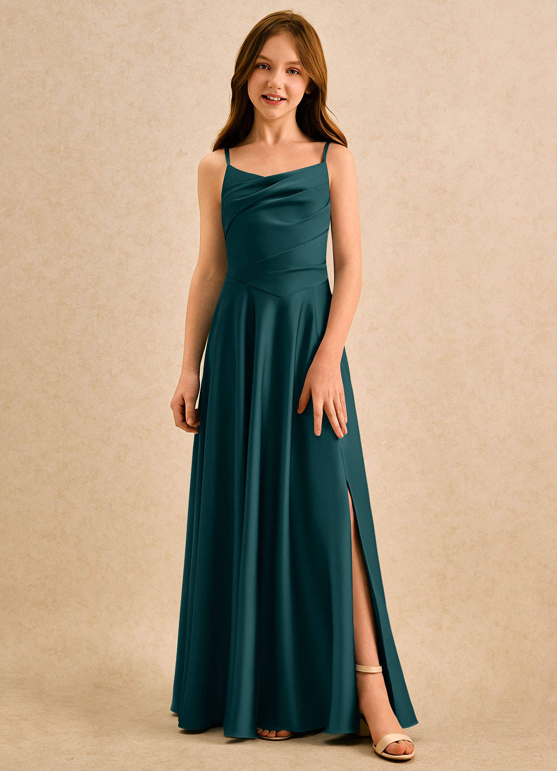 Linia A Pofałdowany Satyna elastyczna Długość podłogi Sukienka