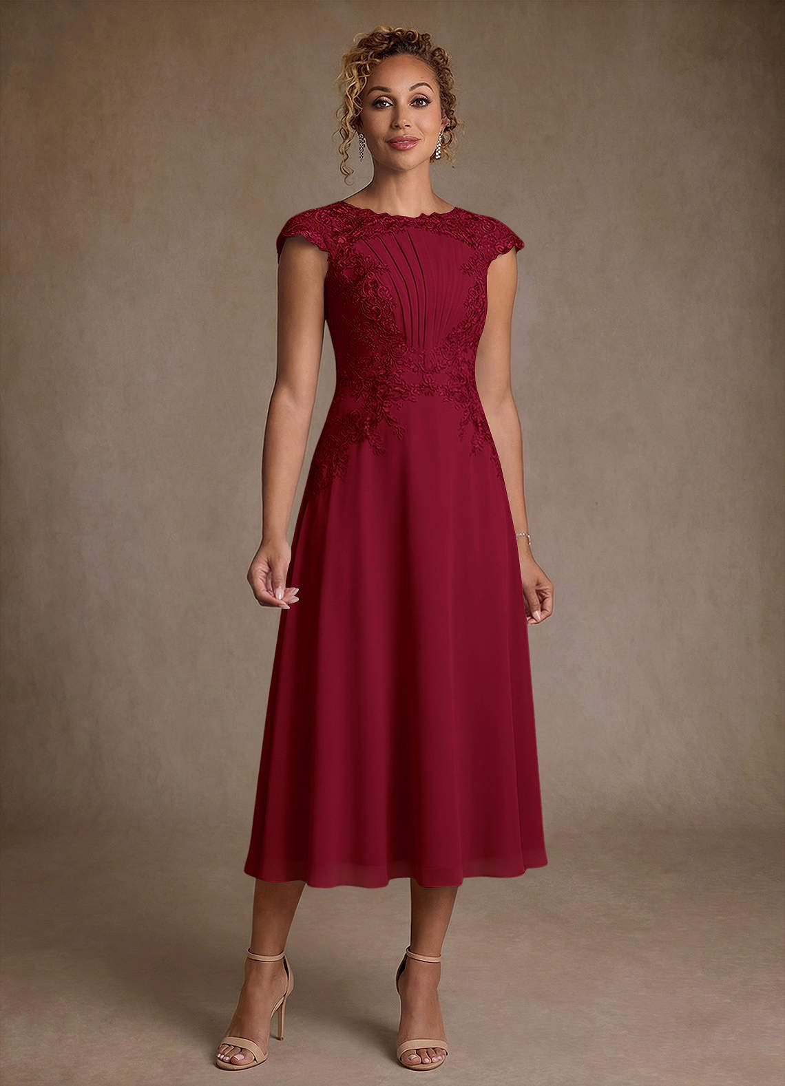 Linia A Koronka Szyfon Długość herbaty Sukienka