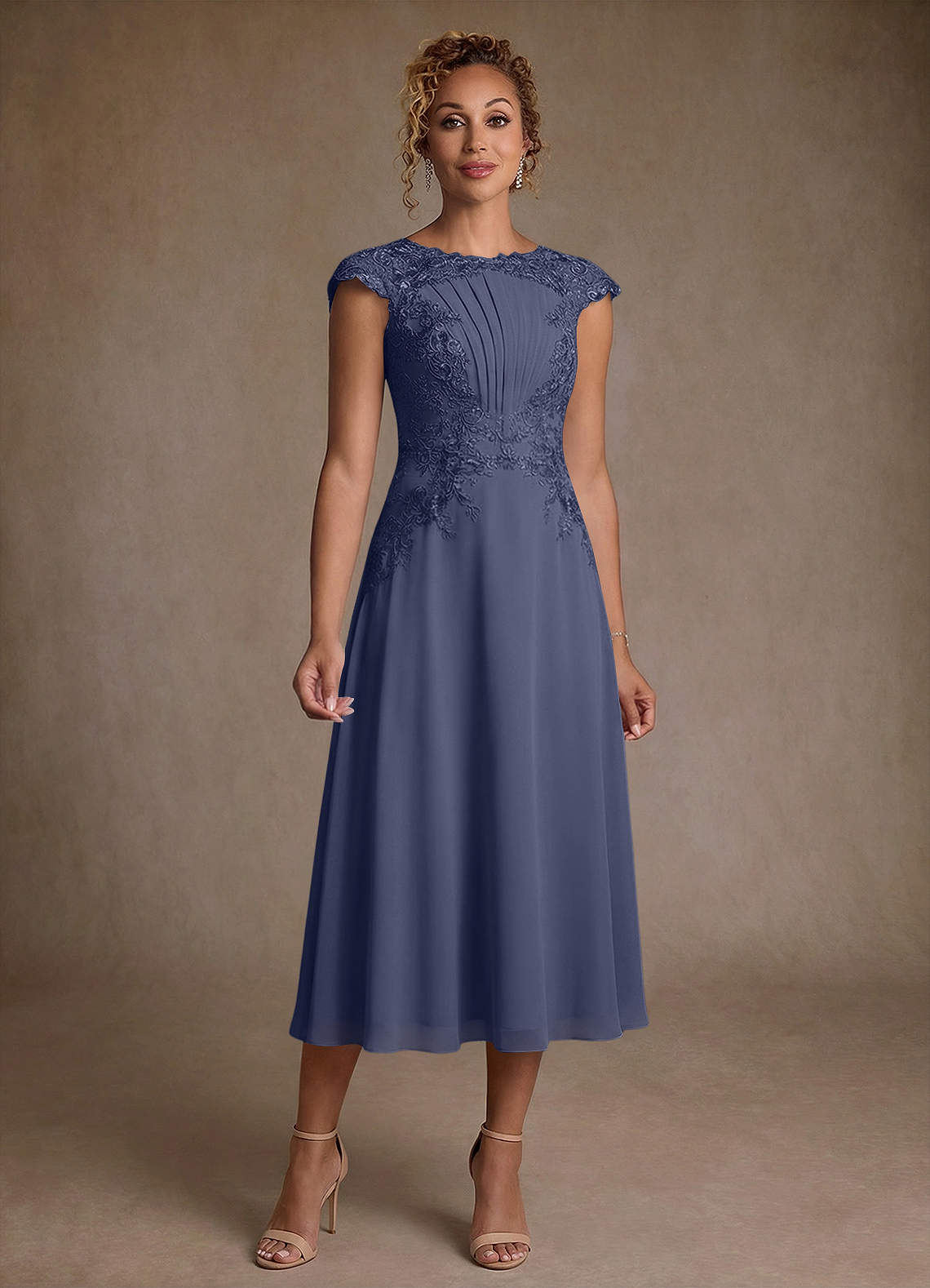 Linia A Koronka Szyfon Długość herbaty Sukienka