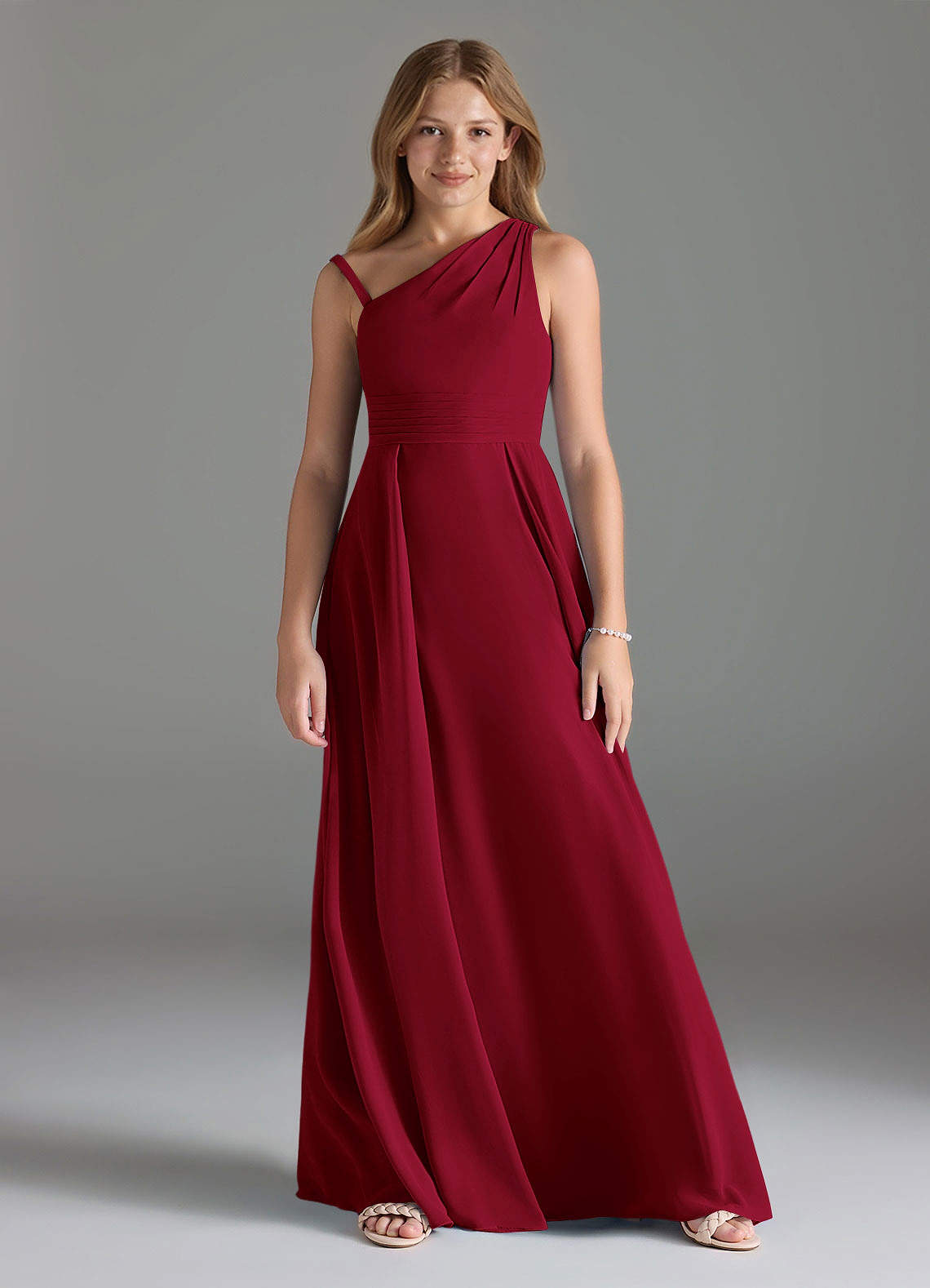 Linia A Pofałdowany Szyfon Długość podłogi Młodsza druhna Sukienka