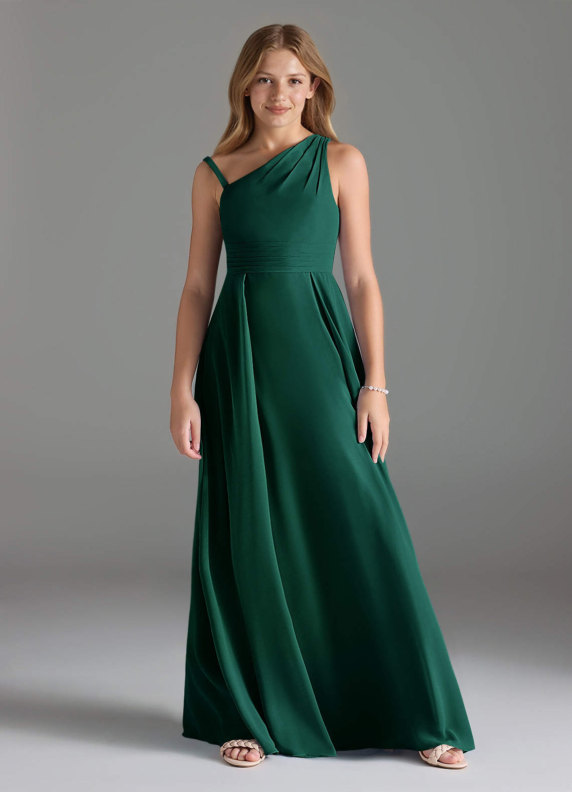Linia A Pofałdowany Szyfon Długość podłogi Młodsza druhna Sukienka