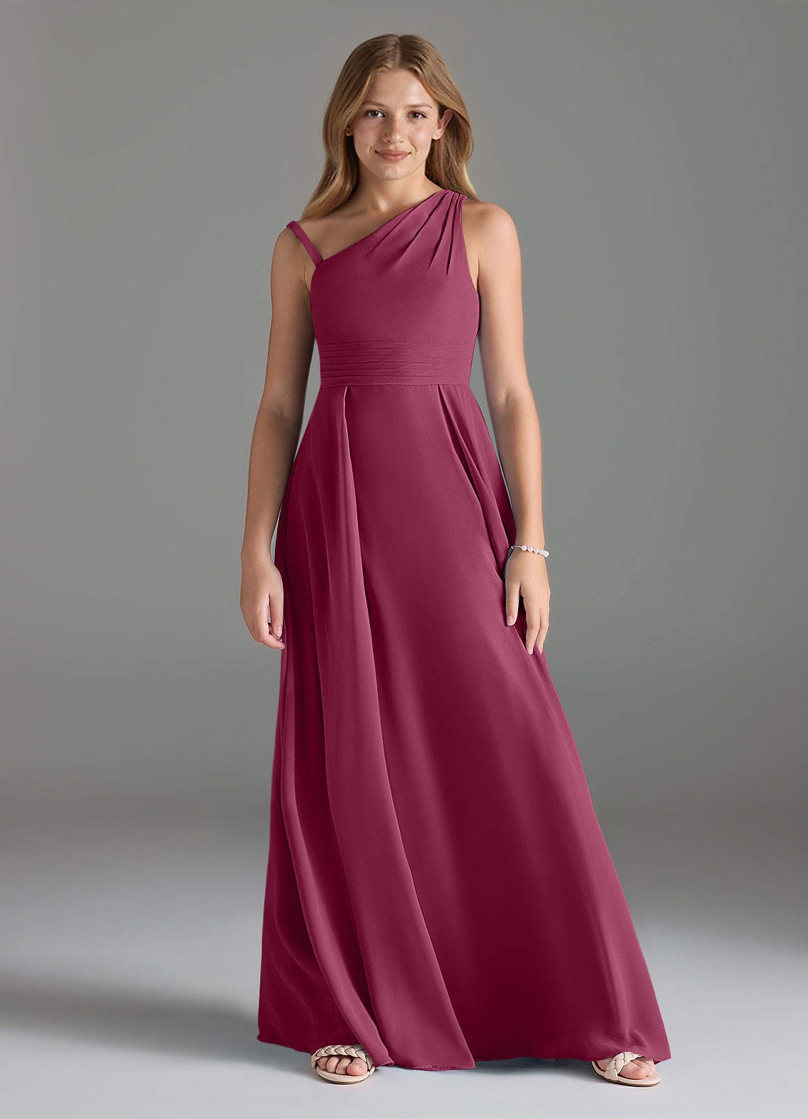 Linia A Pofałdowany Szyfon Długość podłogi Młodsza druhna Sukienka