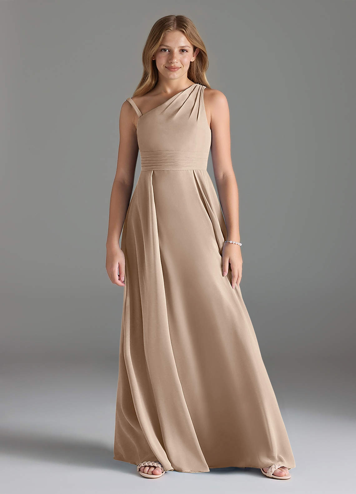 Linia A Pofałdowany Szyfon Długość podłogi Młodsza druhna Sukienka