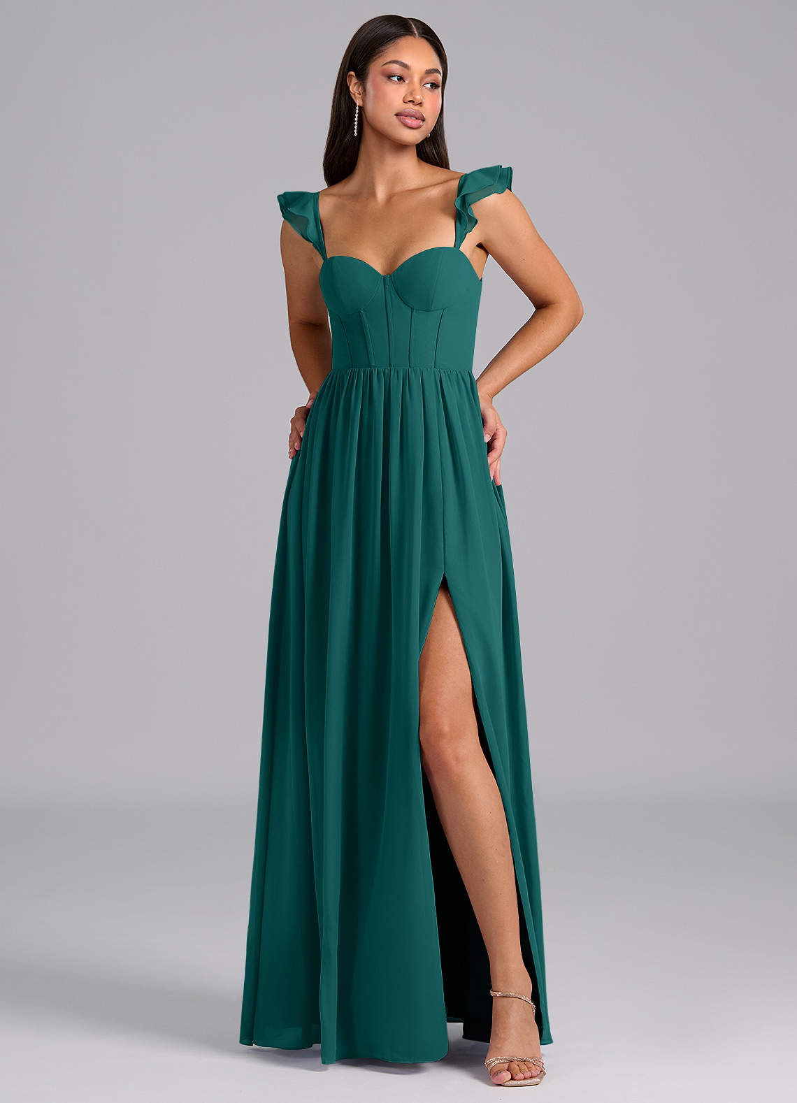 Linia A Marszczony Szyfon Do ziemi Sukienka