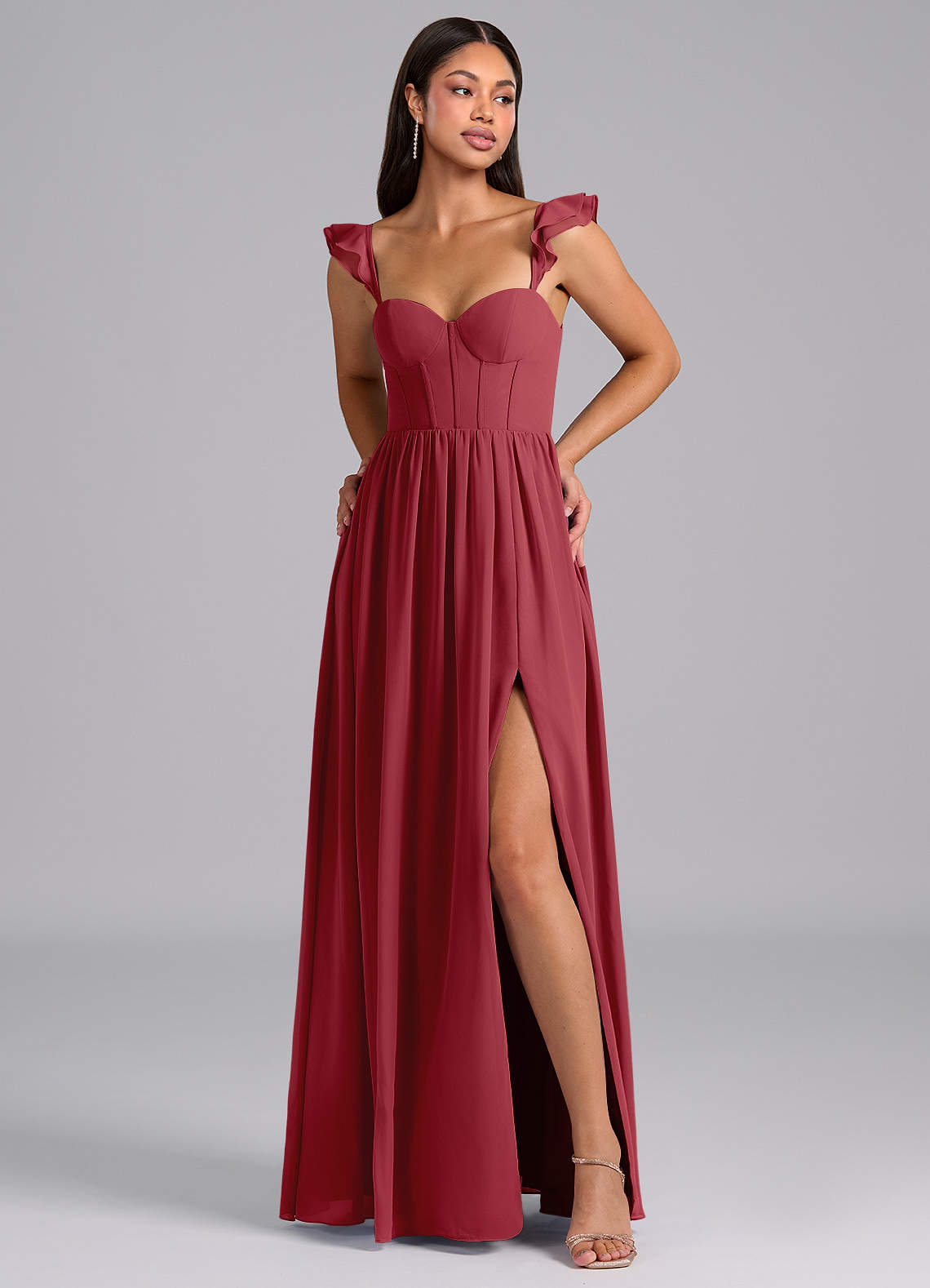 Linia A Marszczony Szyfon Do ziemi Sukienka
