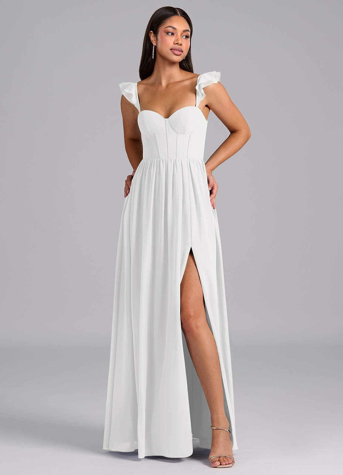 Linia A Marszczony Szyfon Do ziemi Sukienka