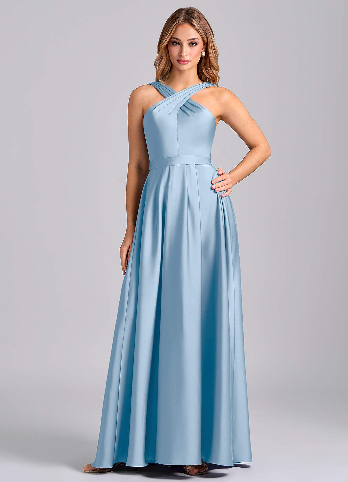 Linia A Pofałdowany Satyna elastyczna Do ziemi Sukienka
