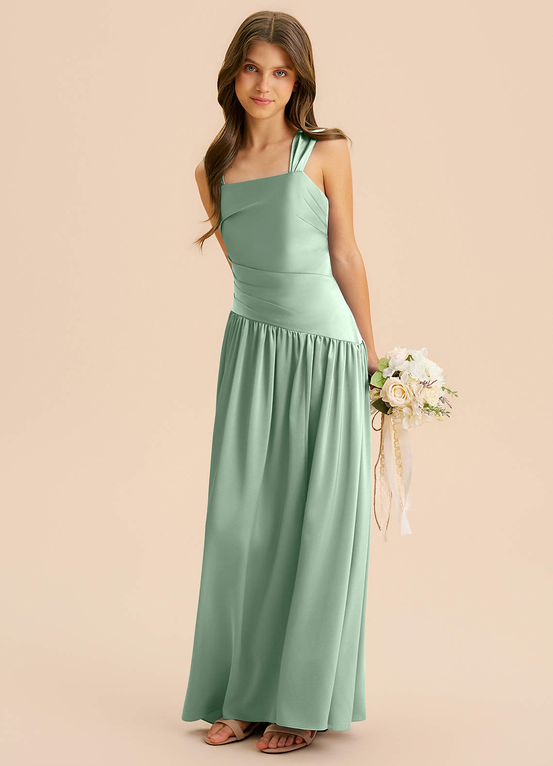 Linia A Pofałdowany Satyna elastyczna Długość podłogi Młodsza druhna Sukienka