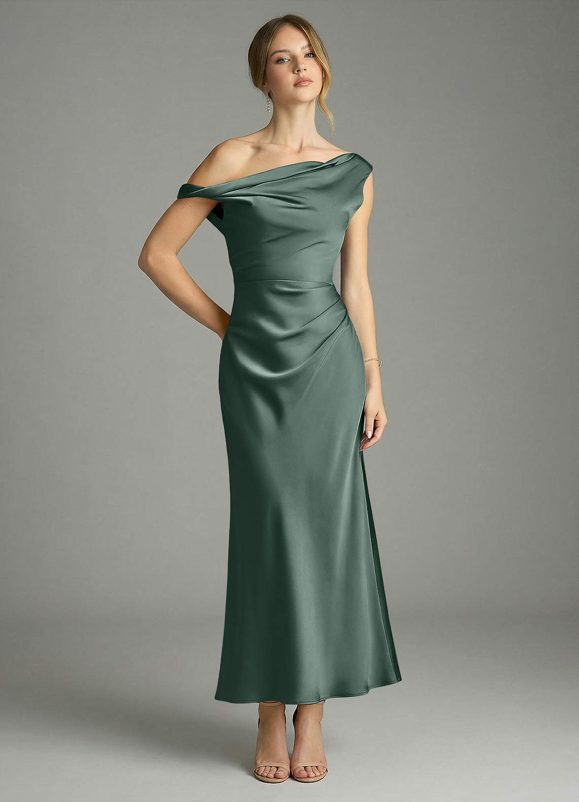 Syrena Zza ramienia Satyna elastyczna Długość kostki Sukienka