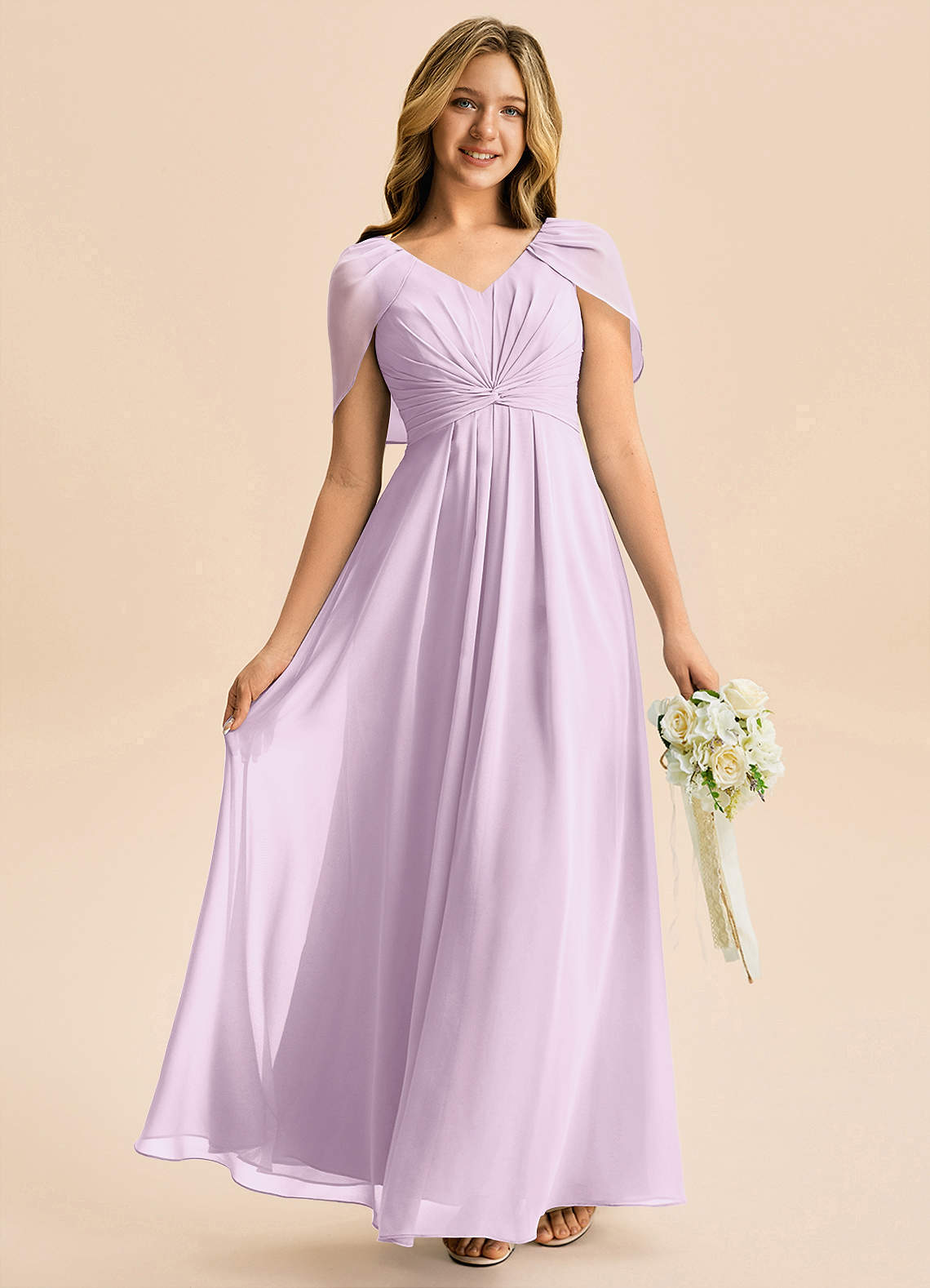 Linia A Pofałdowany Szyfon Długość podłogi Młodsza druhna Sukienka