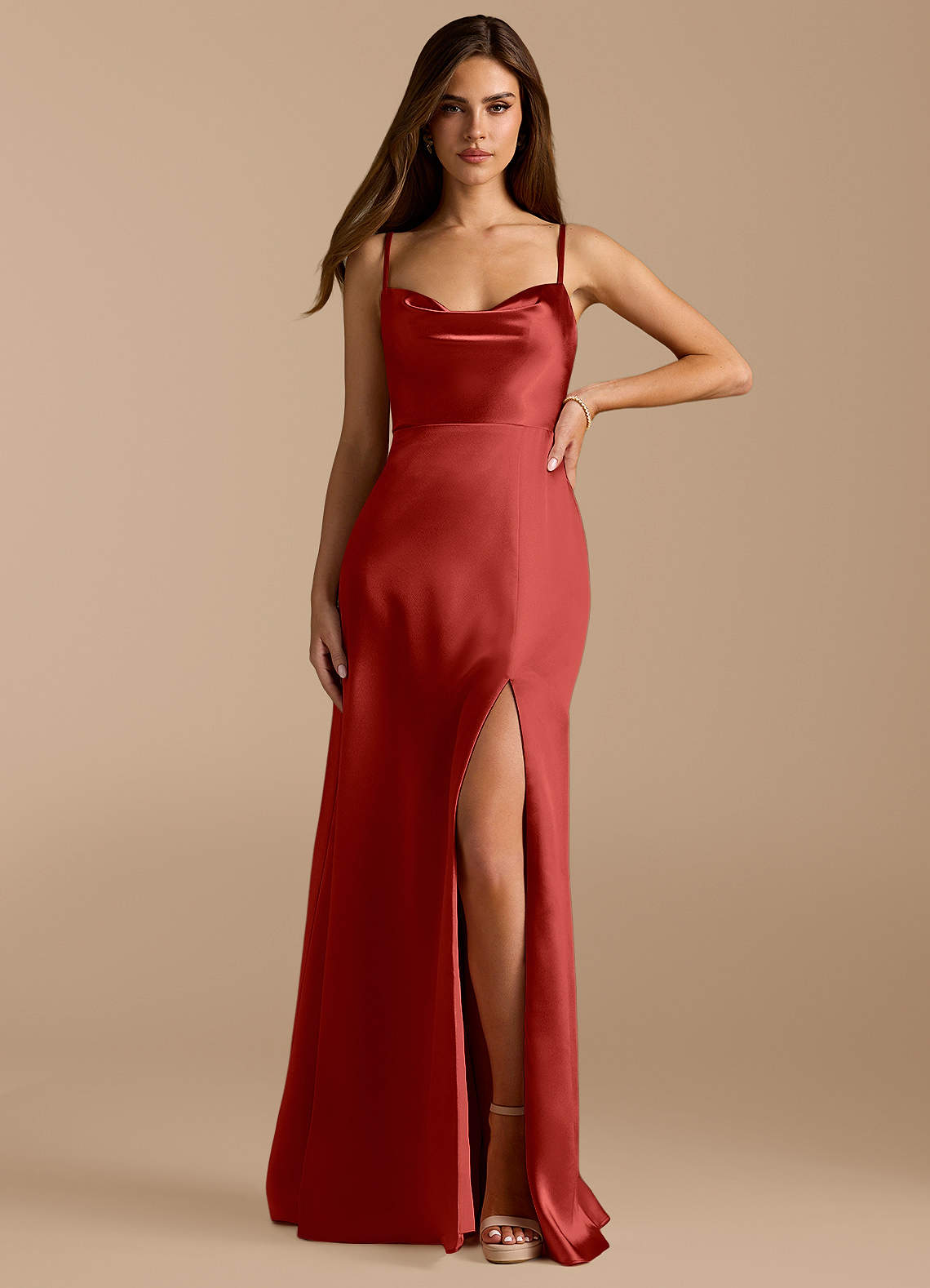 Linia A Rozcięcie z boku Metaliczny satynowy Do ziemi Sukienka