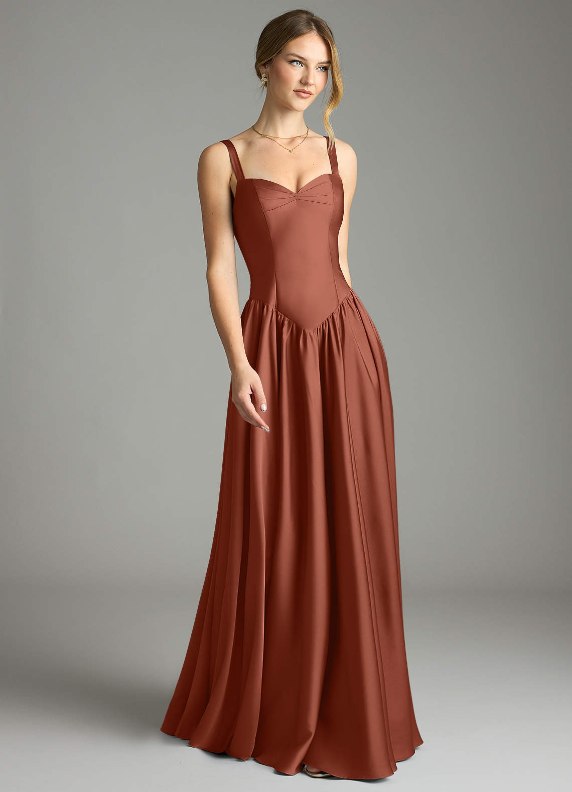 Linia A Gorset Satyna elastyczna Do ziemi Sukienka