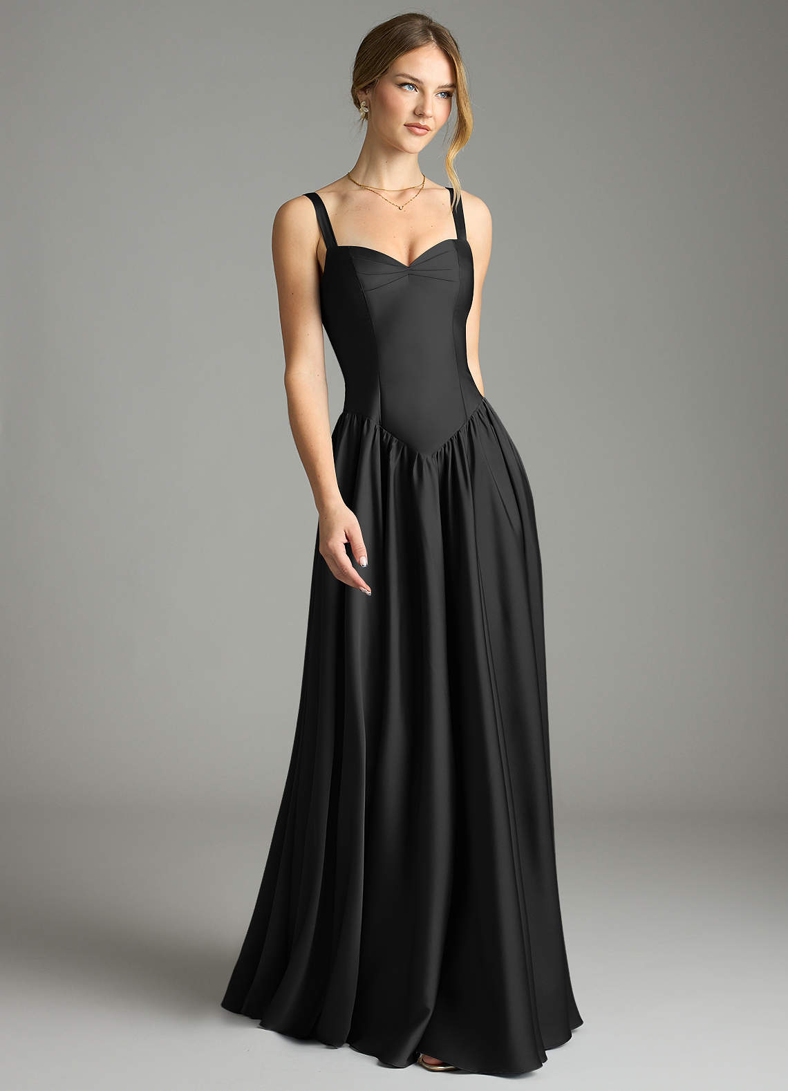 Linia A Gorset Satyna elastyczna Do ziemi Sukienka