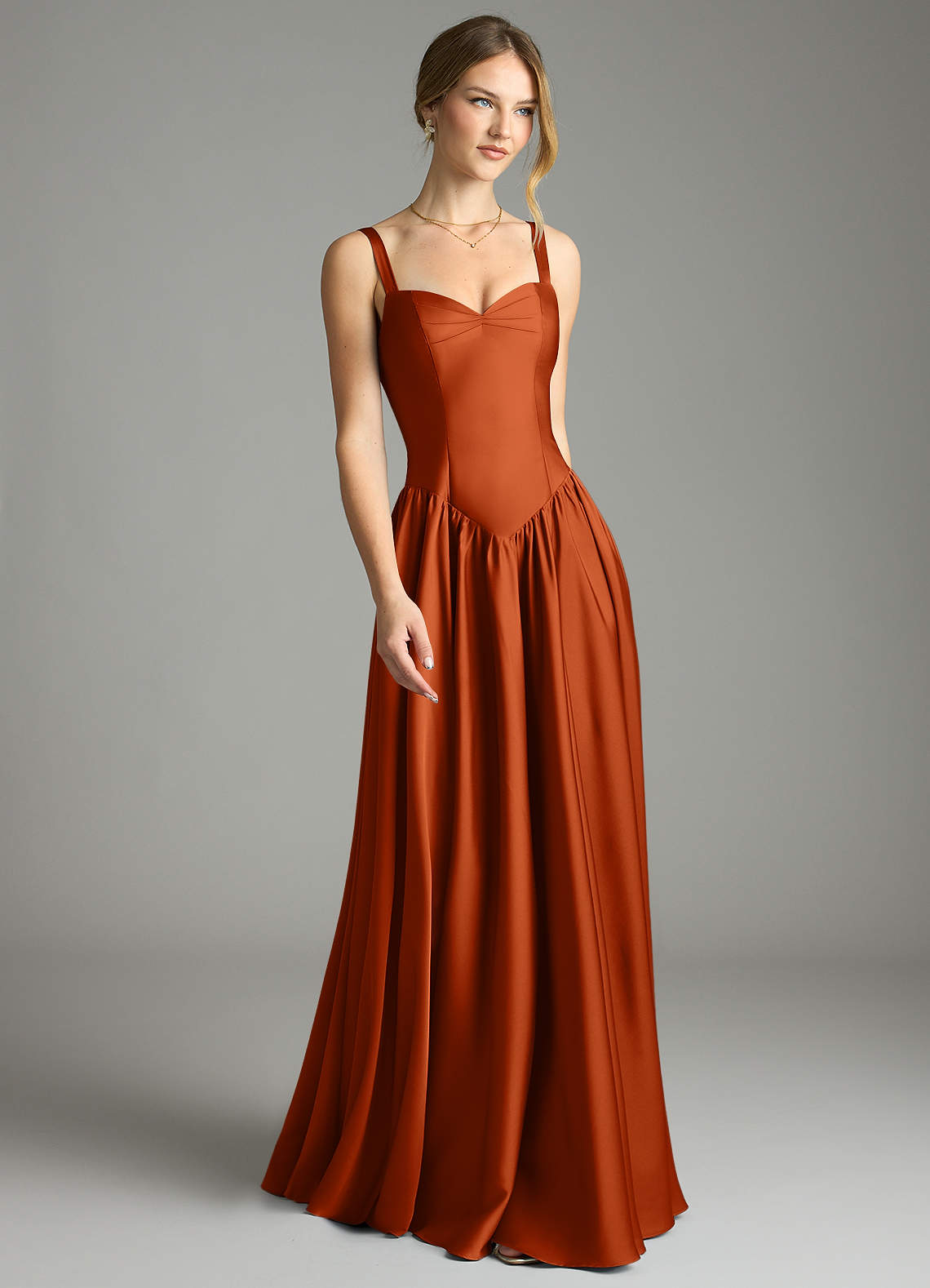 Linia A Gorset Satyna elastyczna Do ziemi Sukienka