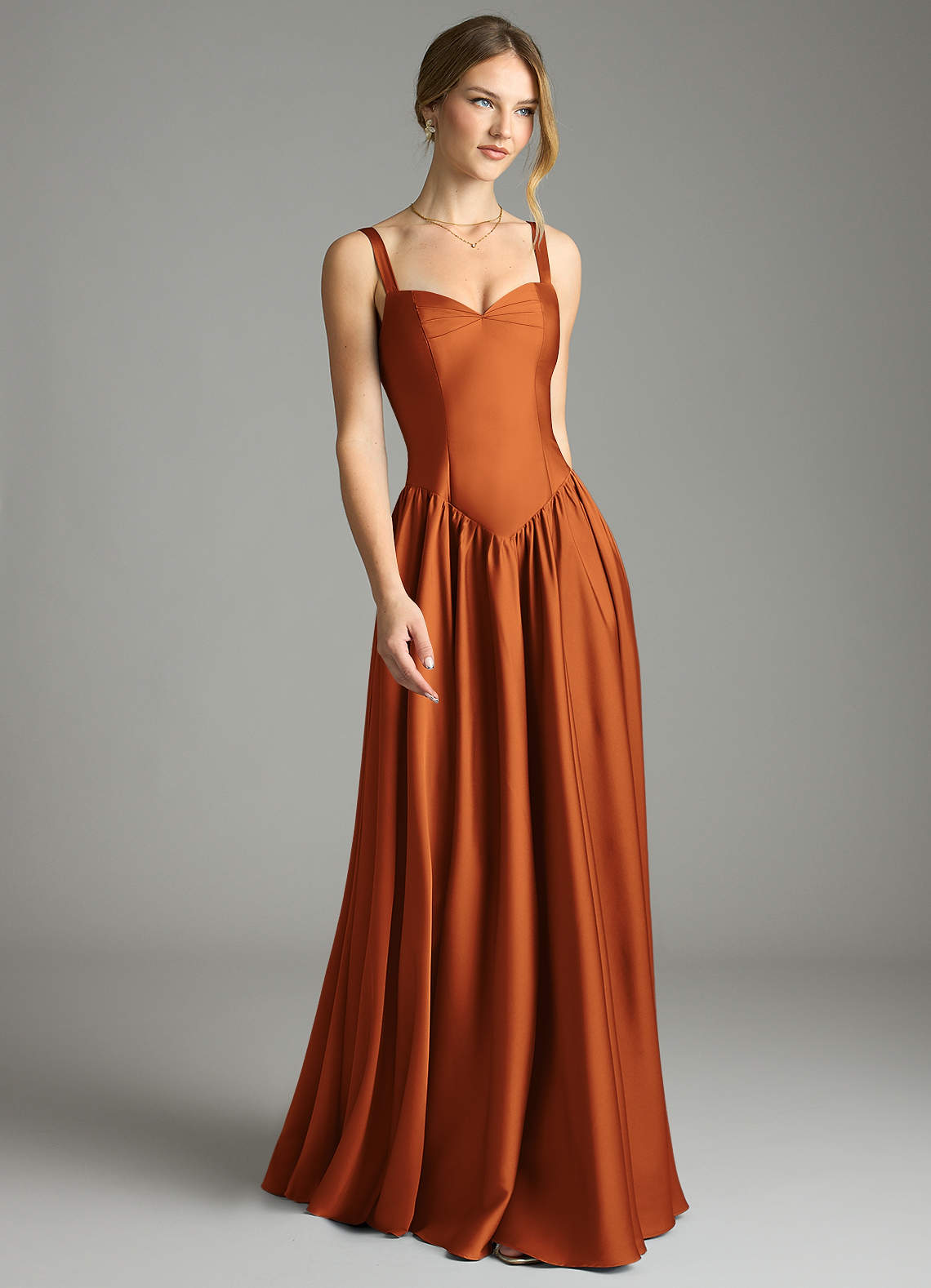 Linia A Gorset Satyna elastyczna Do ziemi Sukienka