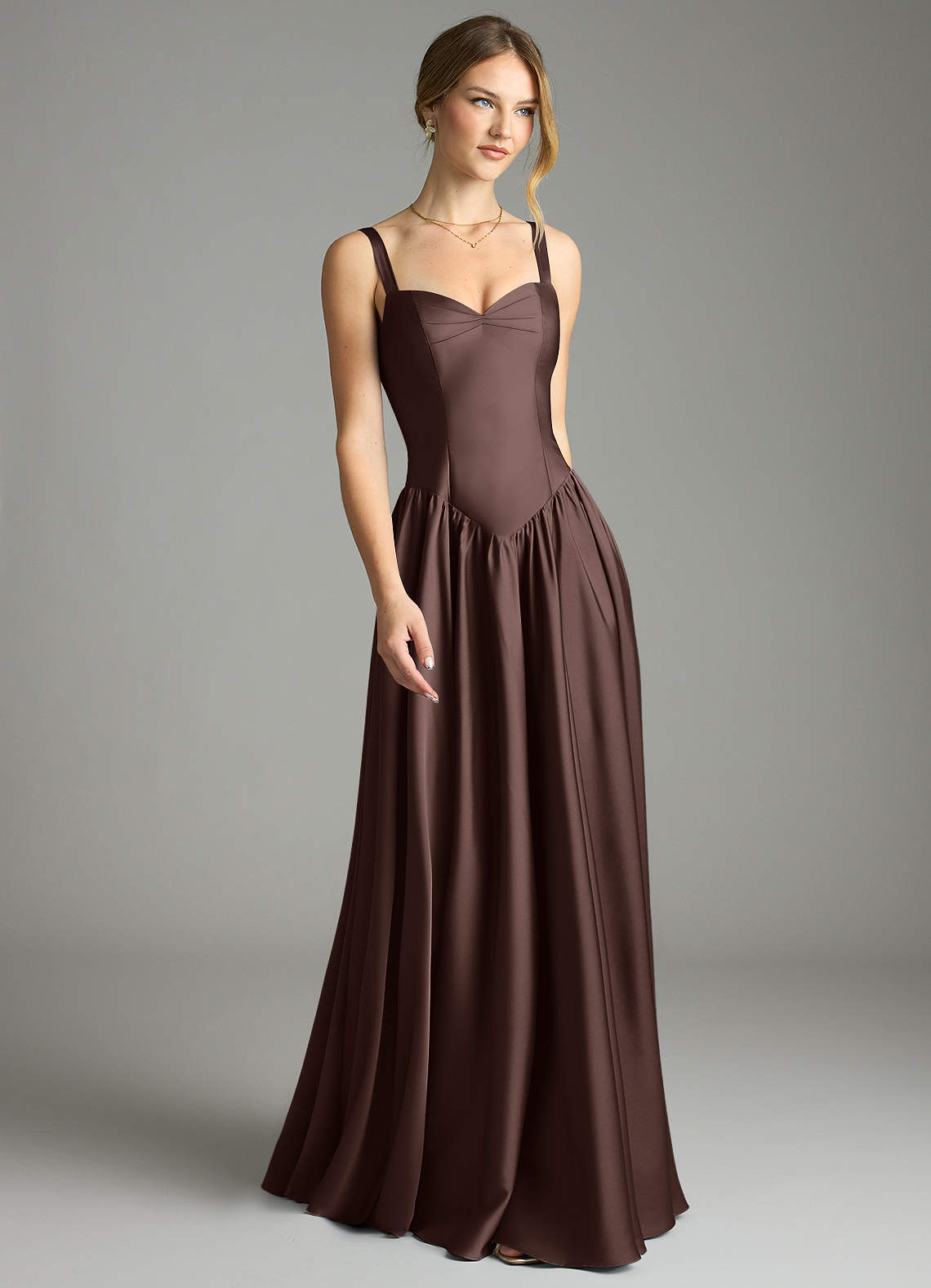 Linia A Gorset Satyna elastyczna Do ziemi Sukienka