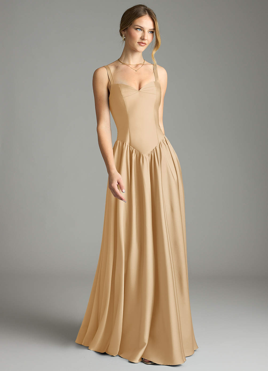 Linia A Gorset Satyna elastyczna Do ziemi Sukienka