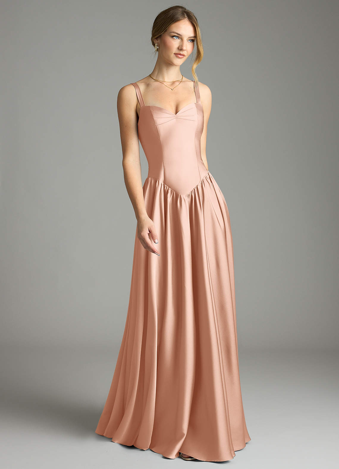 Linia A Gorset Satyna elastyczna Do ziemi Sukienka