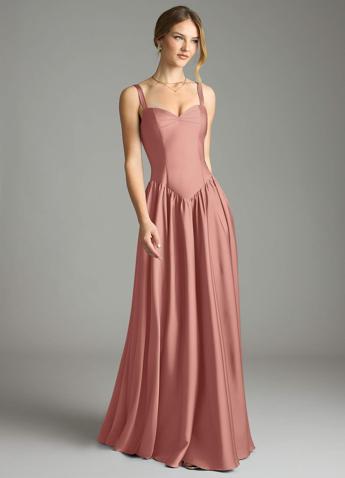 Linia A Gorset Satyna elastyczna Do ziemi Sukienka