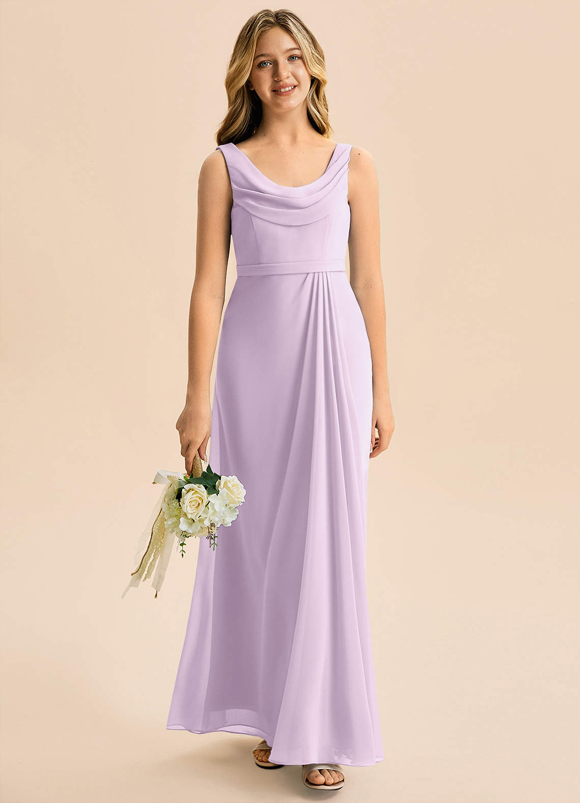 Linia A Pofałdowany Szyfon Długość podłogi Młodsza druhna Sukienka