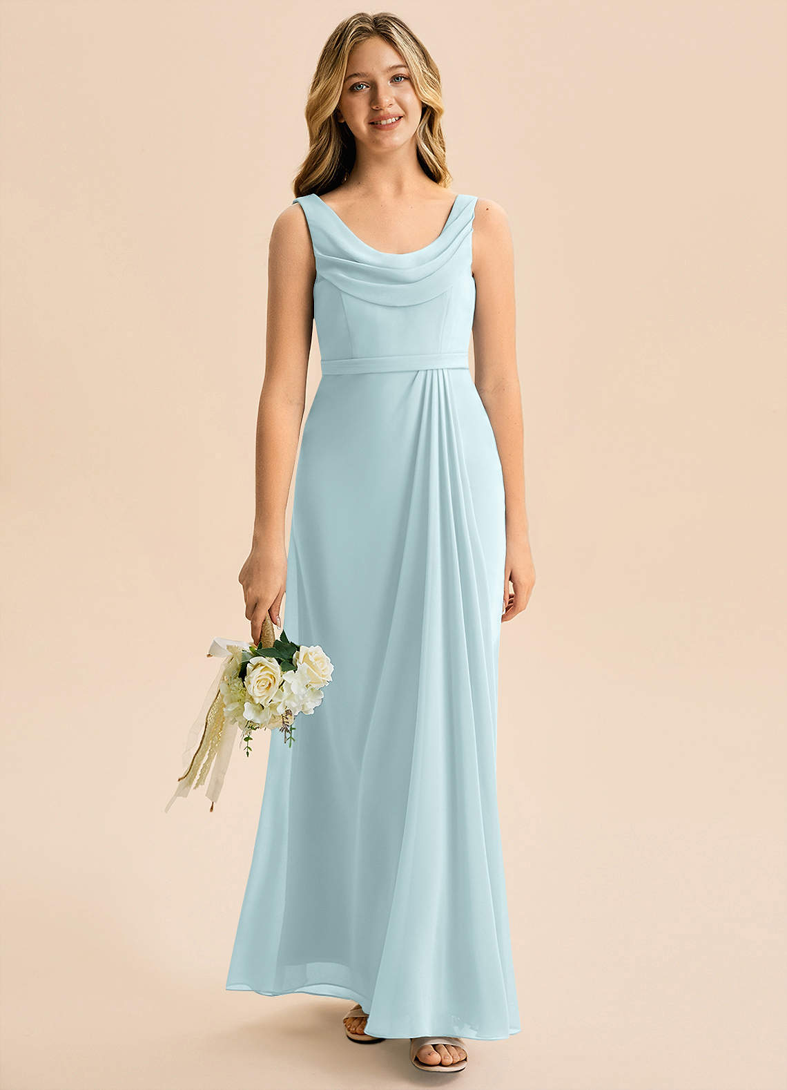 Linia A Pofałdowany Szyfon Długość podłogi Młodsza druhna Sukienka