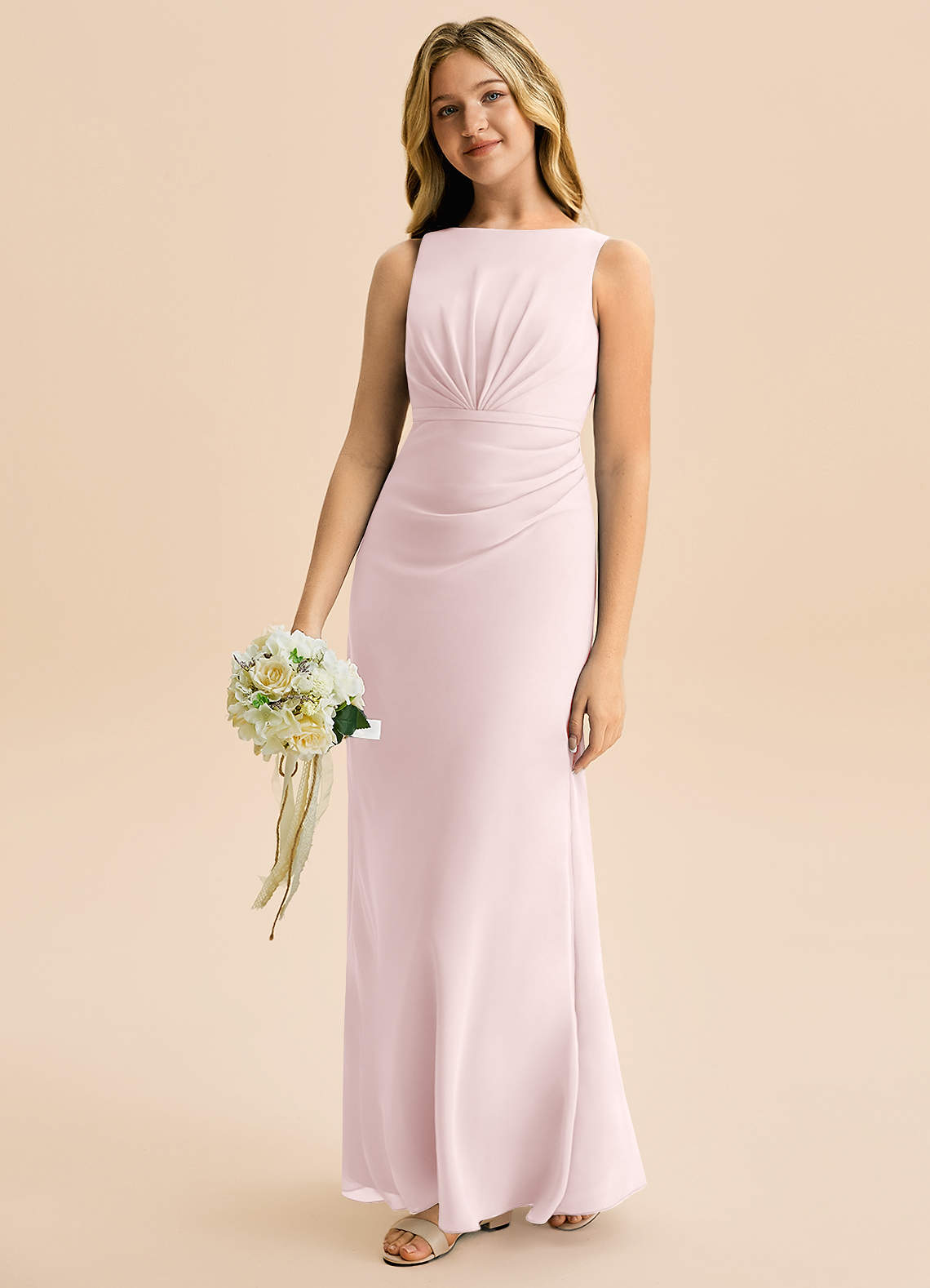 Linia A Pofałdowany Szyfon Długość podłogi Młodsza druhna Sukienka