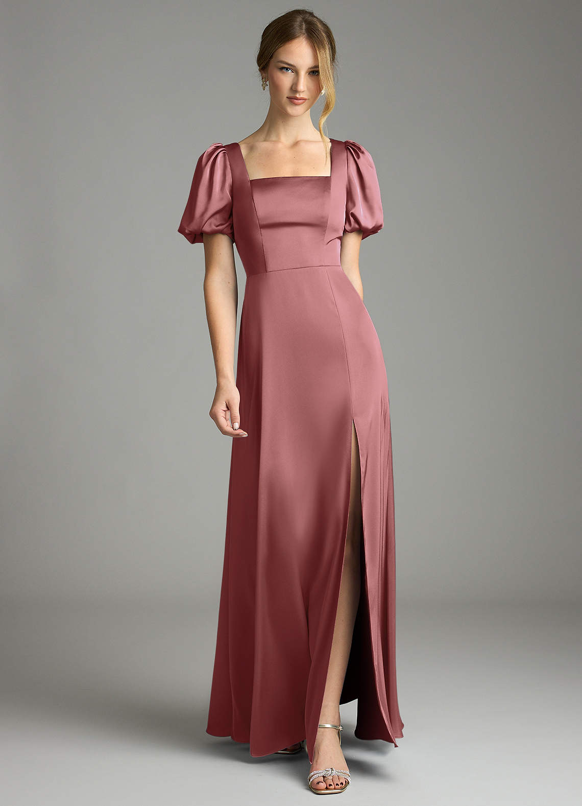 Linia A Pofałdowany Satyna elastyczna Do ziemi Sukienka