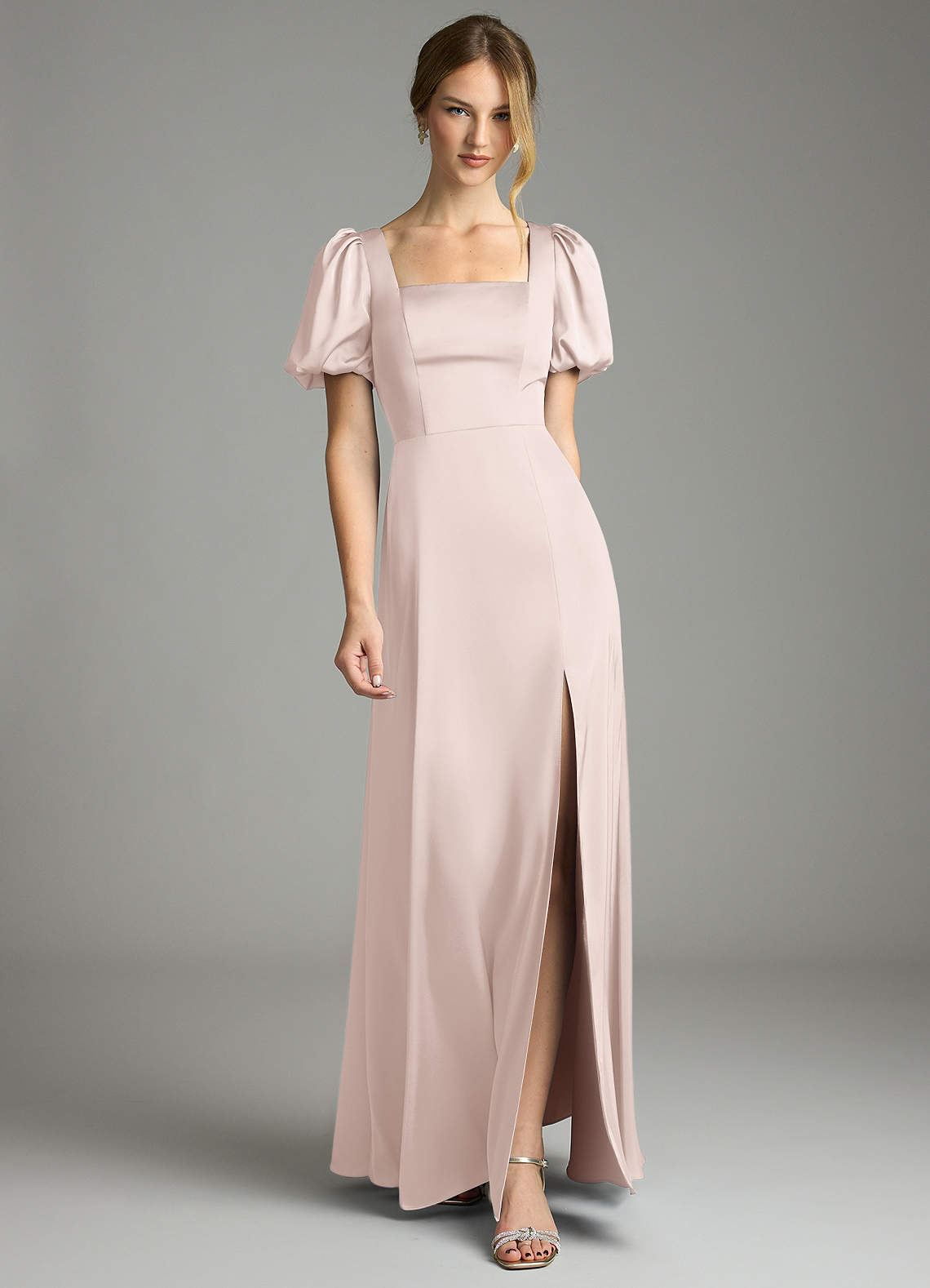 Linia A Pofałdowany Satyna elastyczna Do ziemi Sukienka
