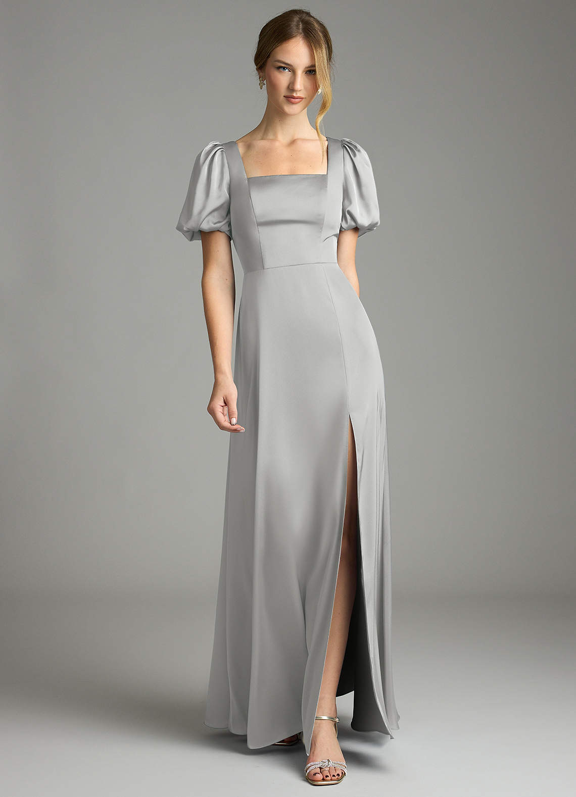 Linia A Pofałdowany Satyna elastyczna Do ziemi Sukienka