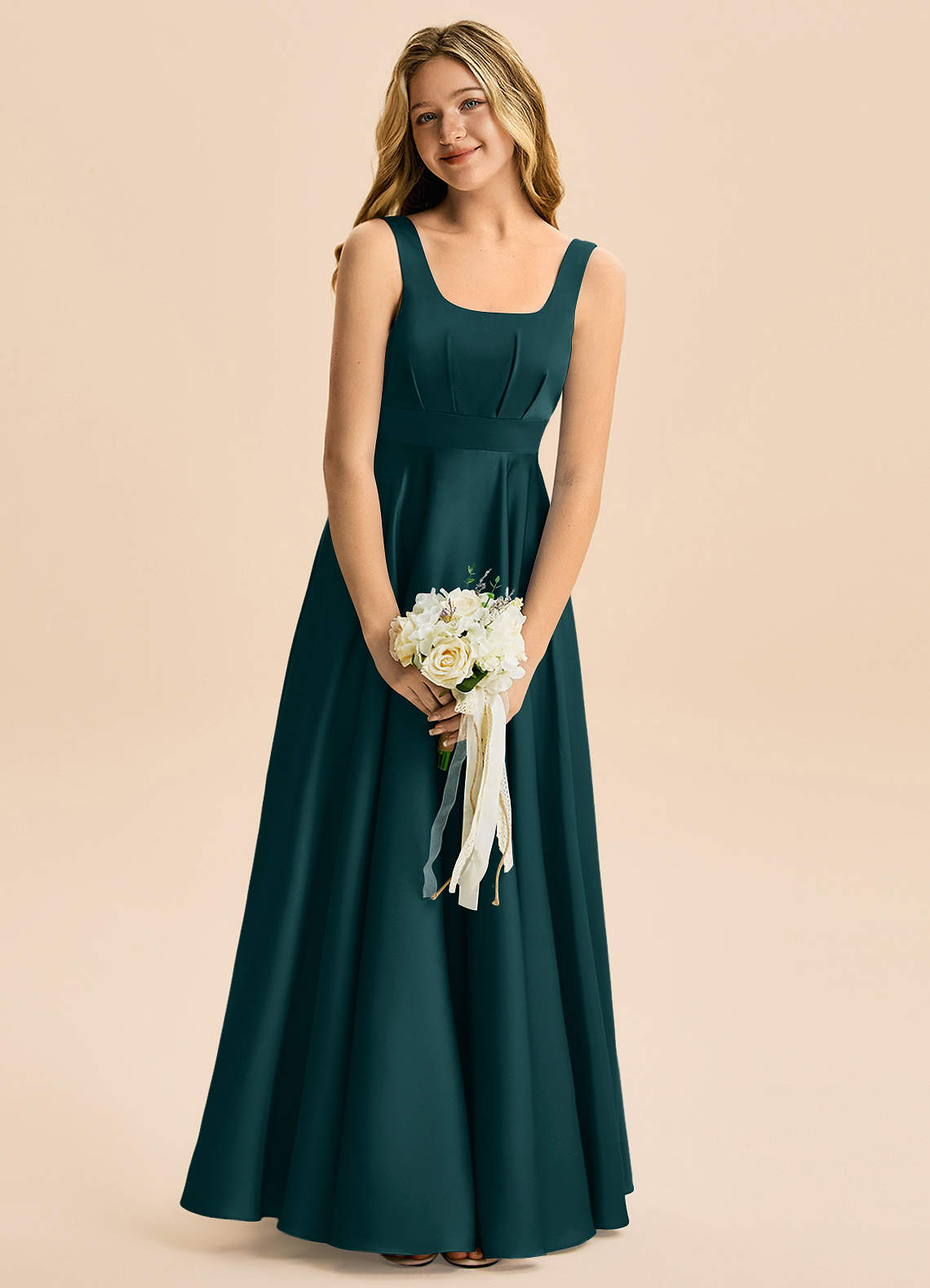 Linia A Pofałdowany Satyna elastyczna Długość podłogi Młodsza druhna Sukienka