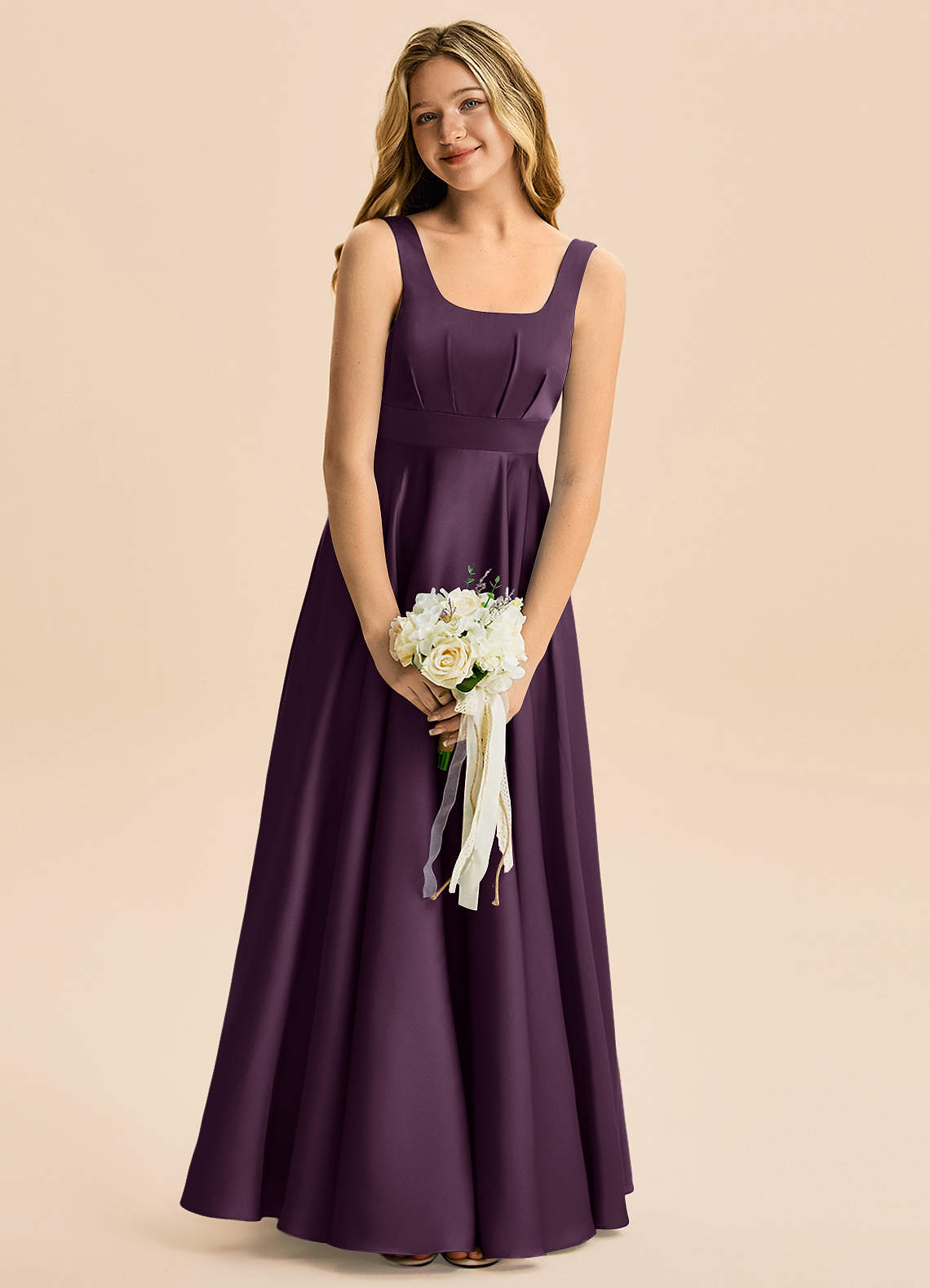 Linia A Pofałdowany Satyna elastyczna Długość podłogi Młodsza druhna Sukienka