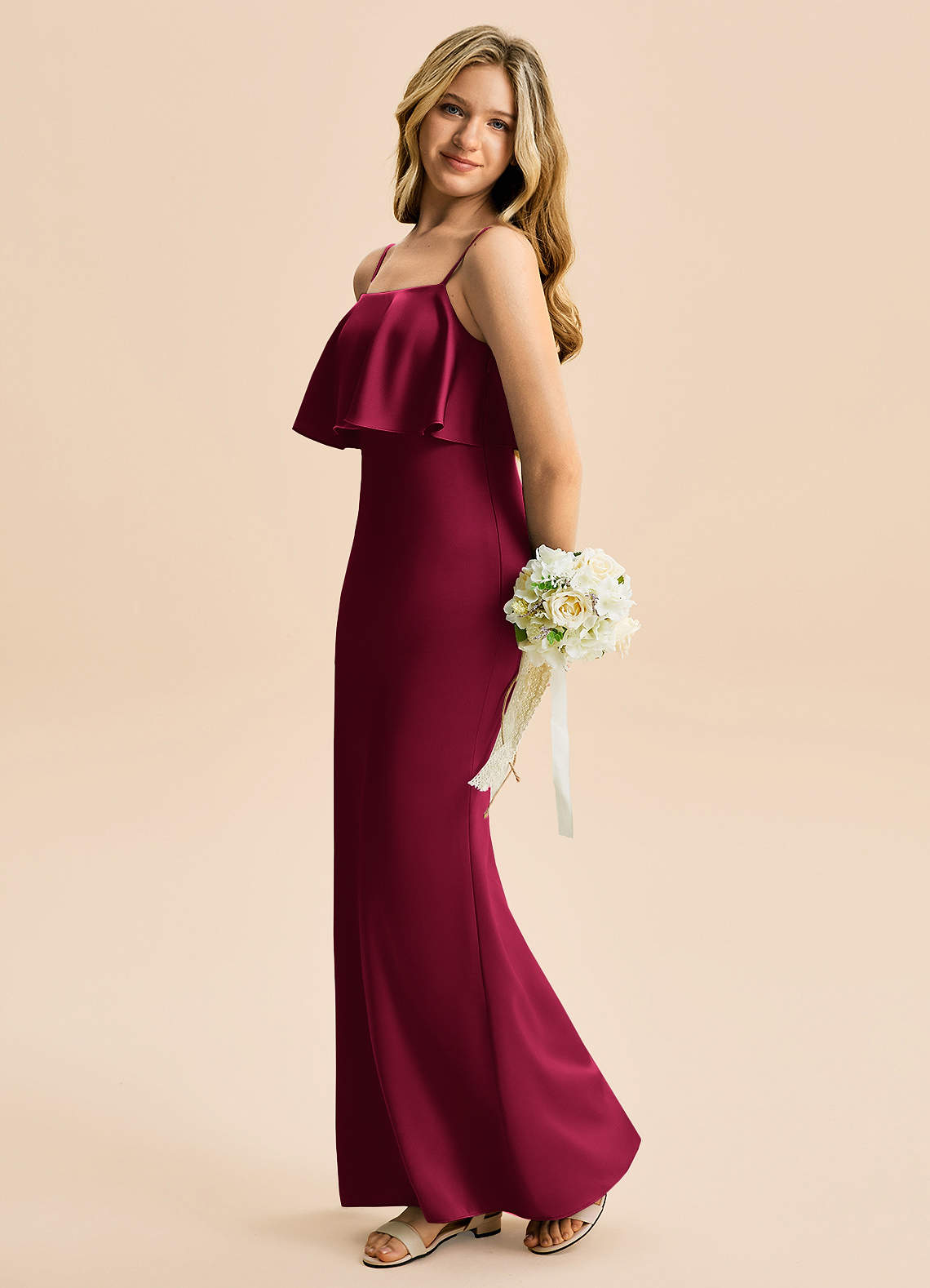 Syrena Satyna elastyczna Długość podłogi Młodsza druhna Sukienka