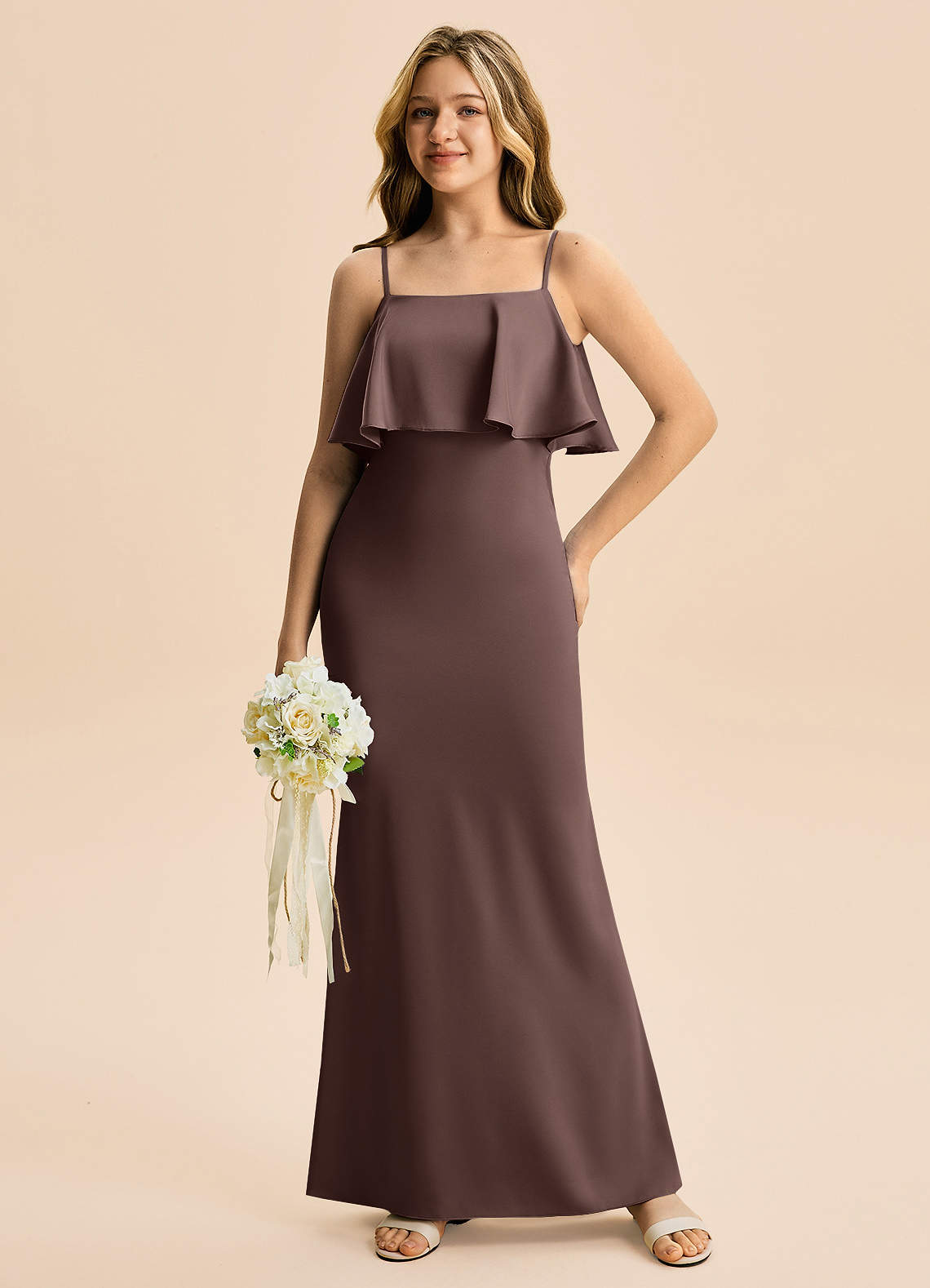Syrena Satyna elastyczna Długość podłogi Młodsza druhna Sukienka