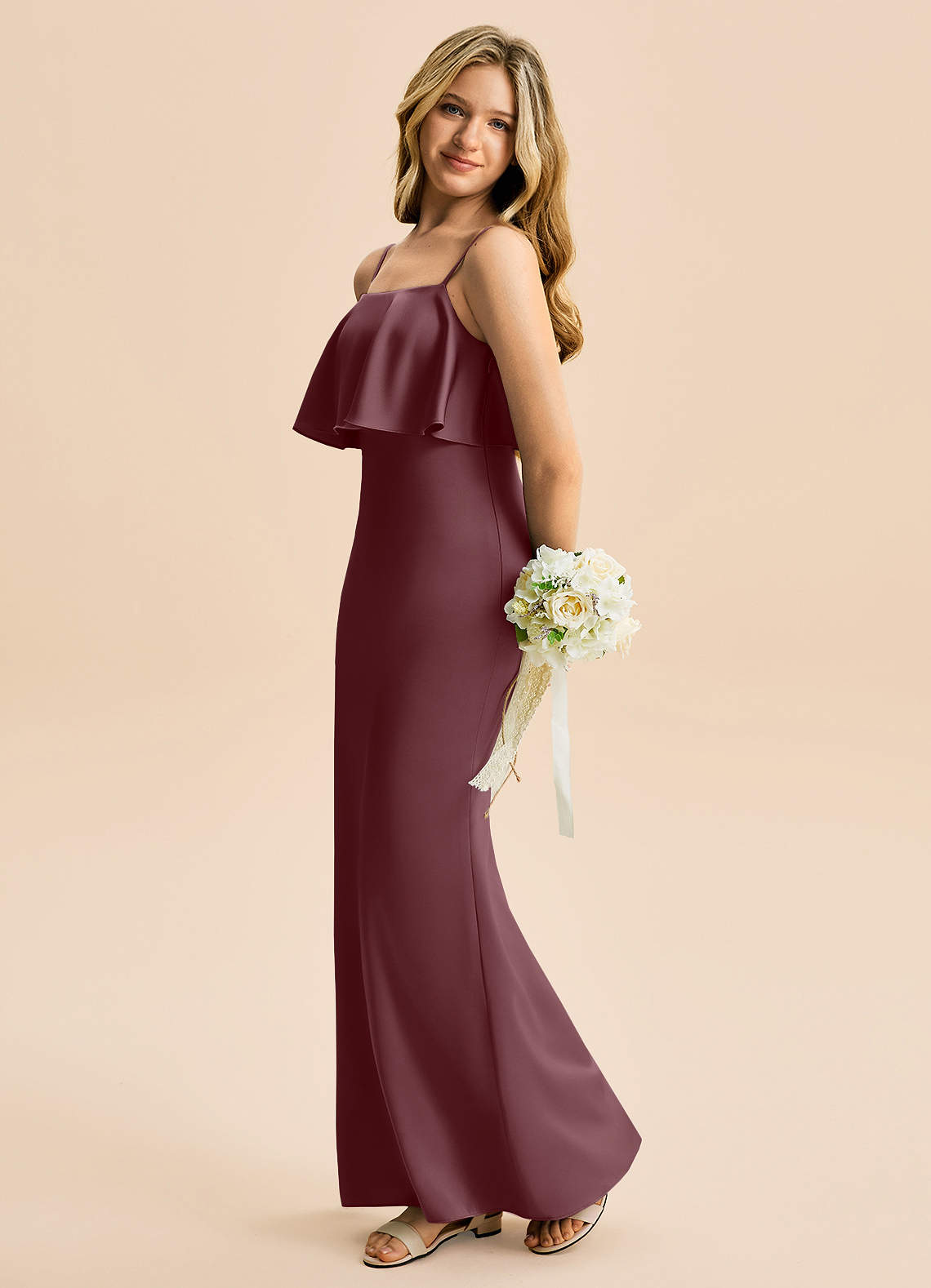 Syrena Satyna elastyczna Długość podłogi Młodsza druhna Sukienka