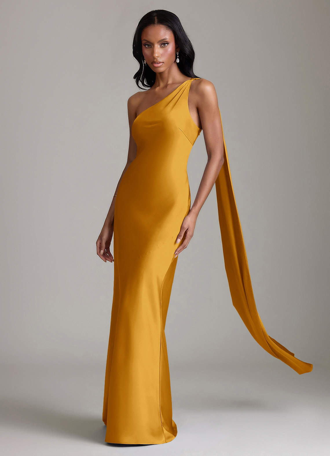 Syrena Jedno ramię Satyna elastyczna Do ziemi Sukienka