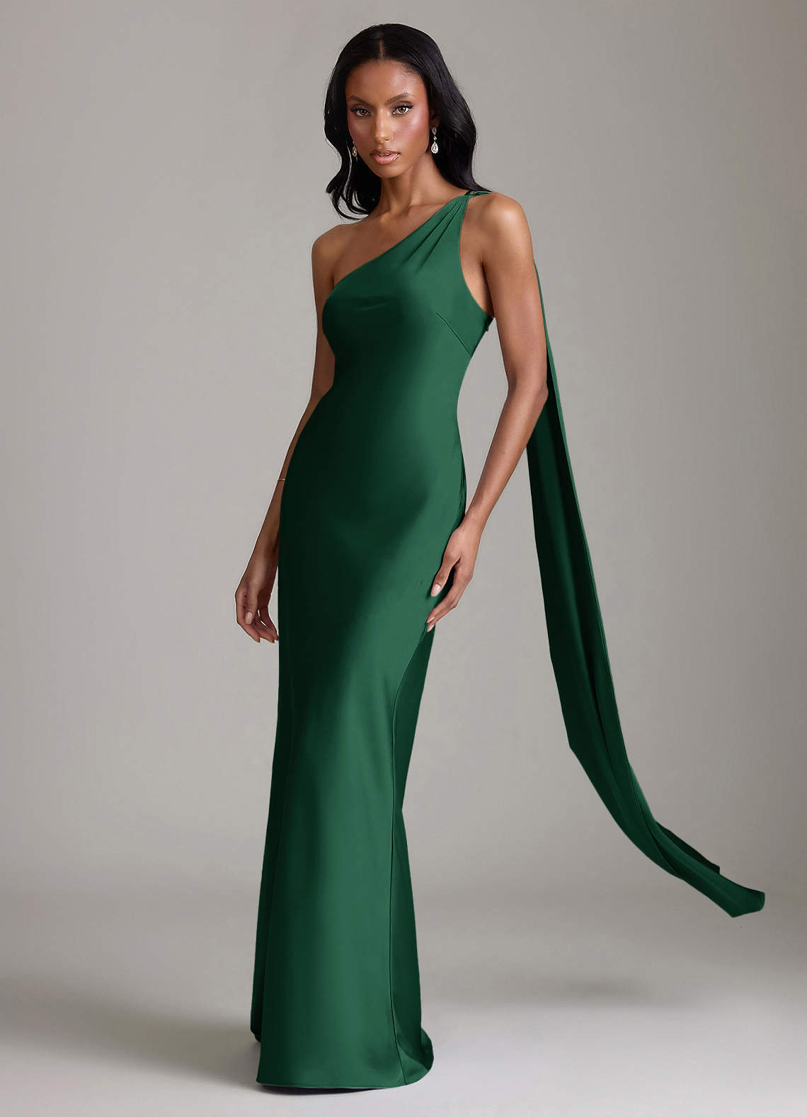 Syrena Jedno ramię Satyna elastyczna Do ziemi Sukienka