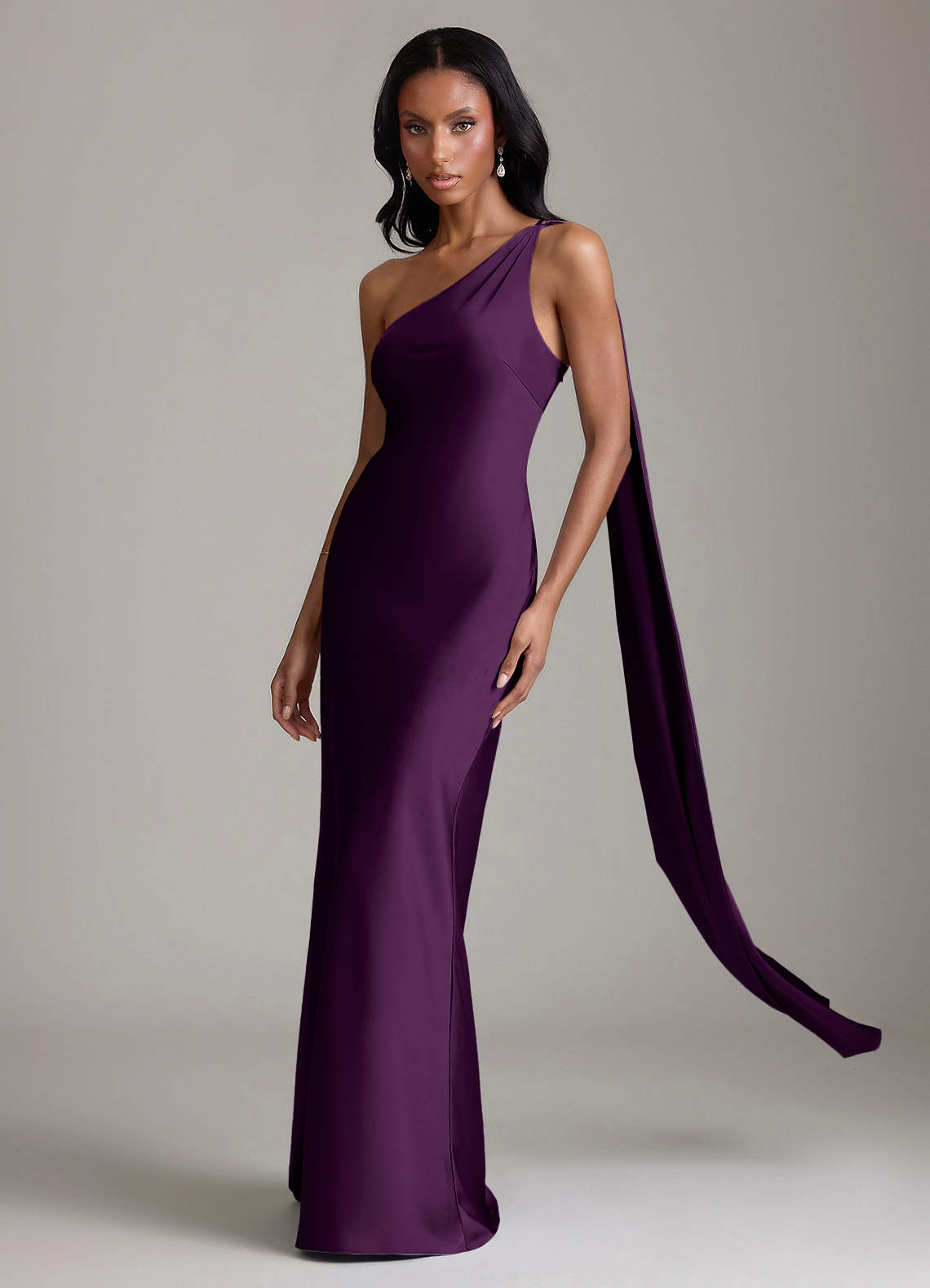Syrena Jedno ramię Satyna elastyczna Do ziemi Sukienka