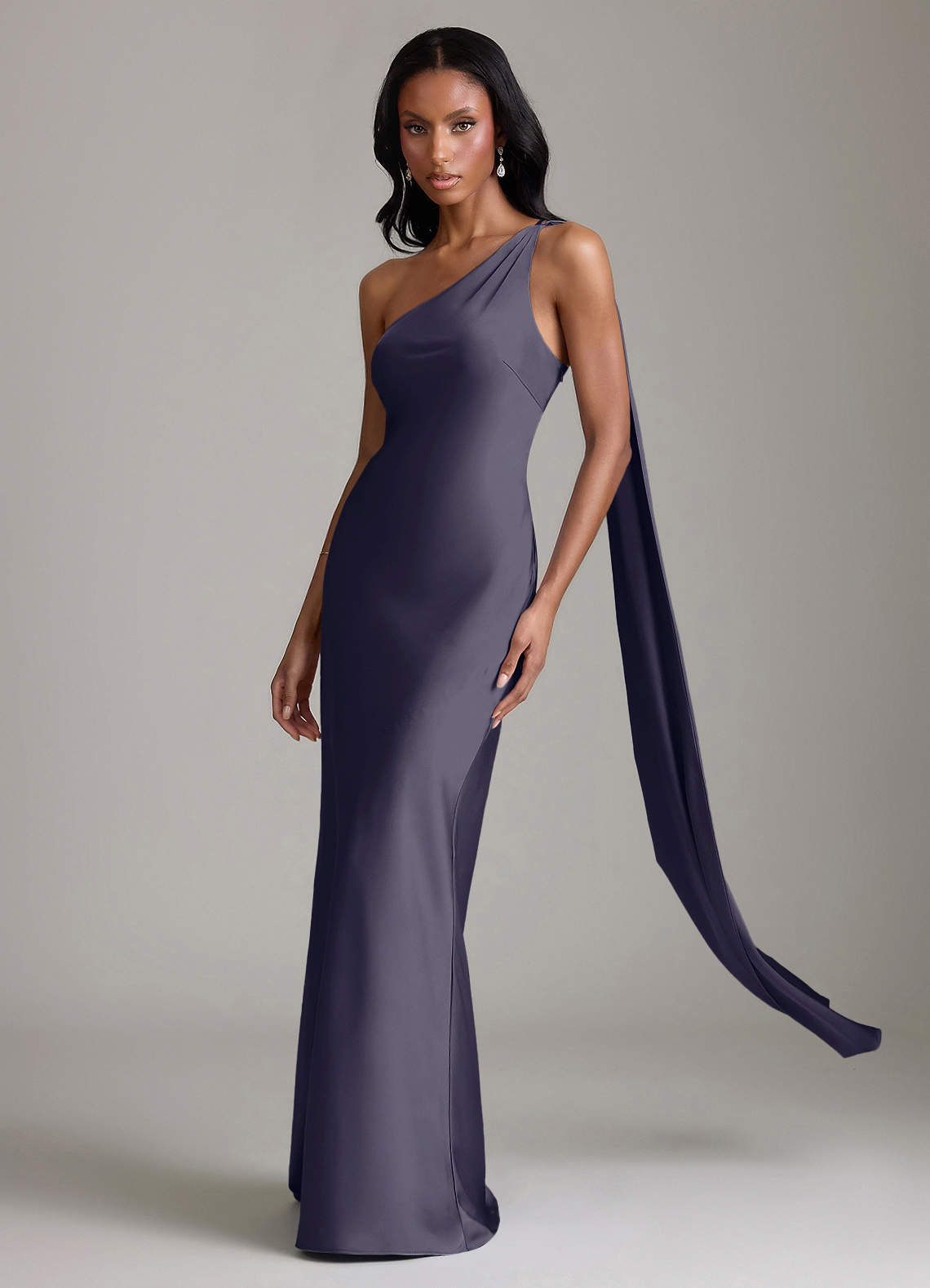 Syrena Jedno ramię Satyna elastyczna Do ziemi Sukienka