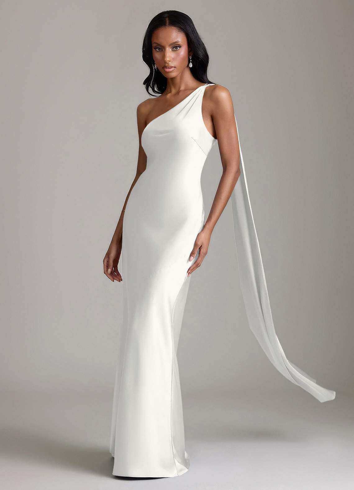 Syrena Jedno ramię Satyna elastyczna Do ziemi Sukienka