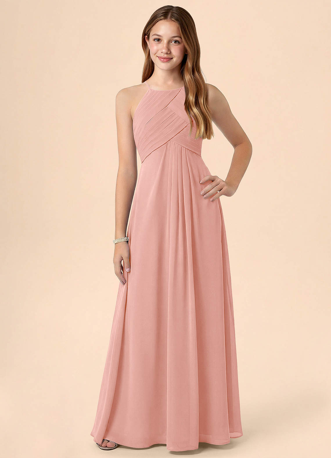 Linia A Pofałdowany Szyfon Długość podłogi Młodsza druhna Sukienka
