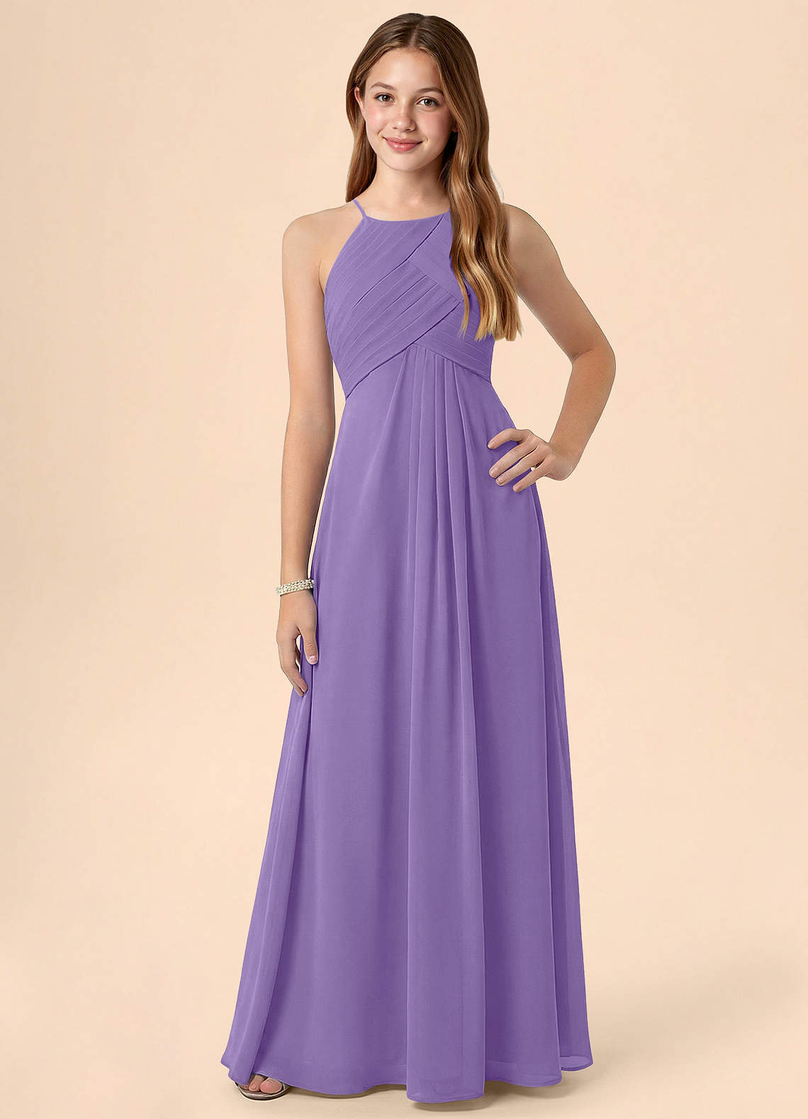 Linia A Pofałdowany Szyfon Długość podłogi Młodsza druhna Sukienka