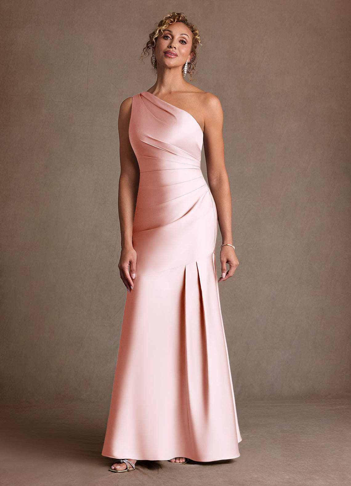 Syrena Jedno ramię Satyna elastyczna Długość podłogi Sukienka