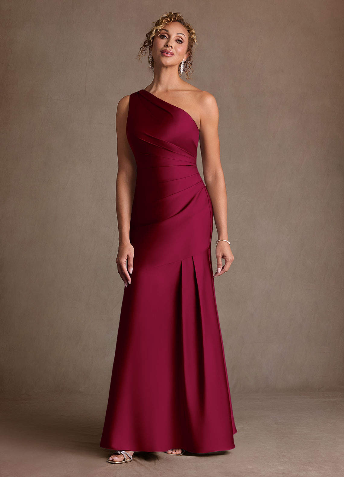 Syrena Jedno ramię Satyna elastyczna Długość podłogi Sukienka