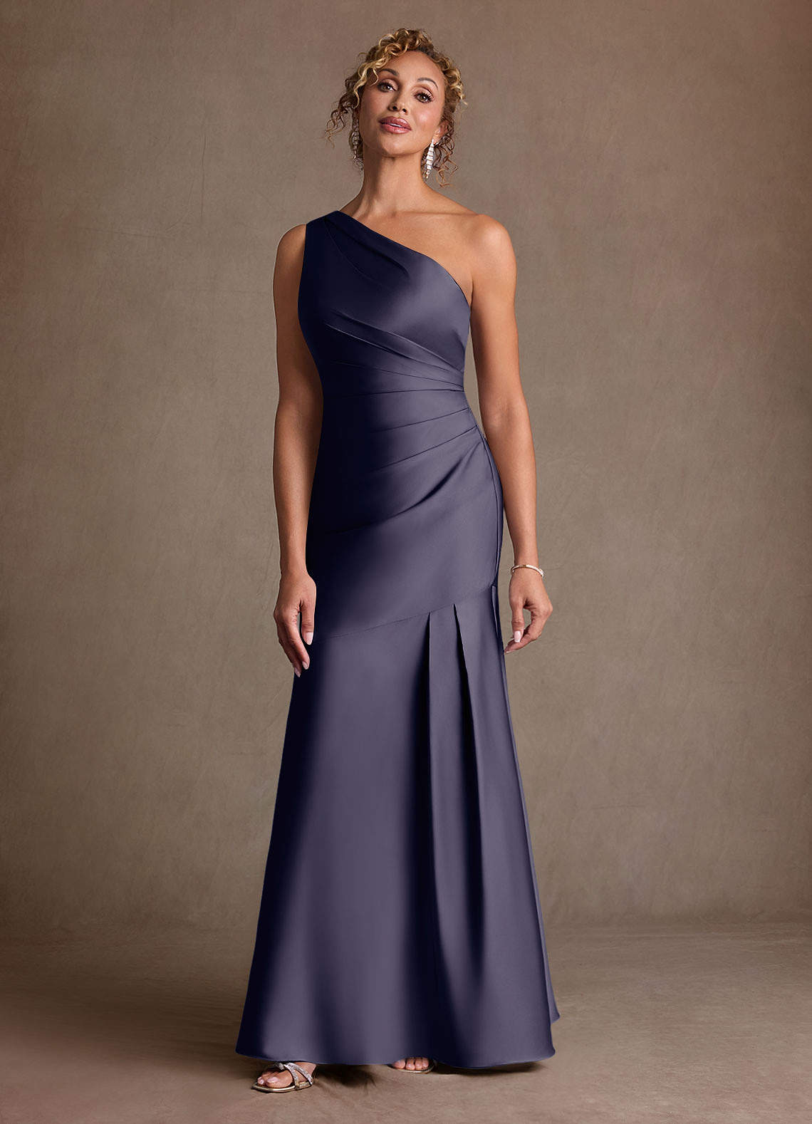 Syrena Jedno ramię Satyna elastyczna Długość podłogi Sukienka