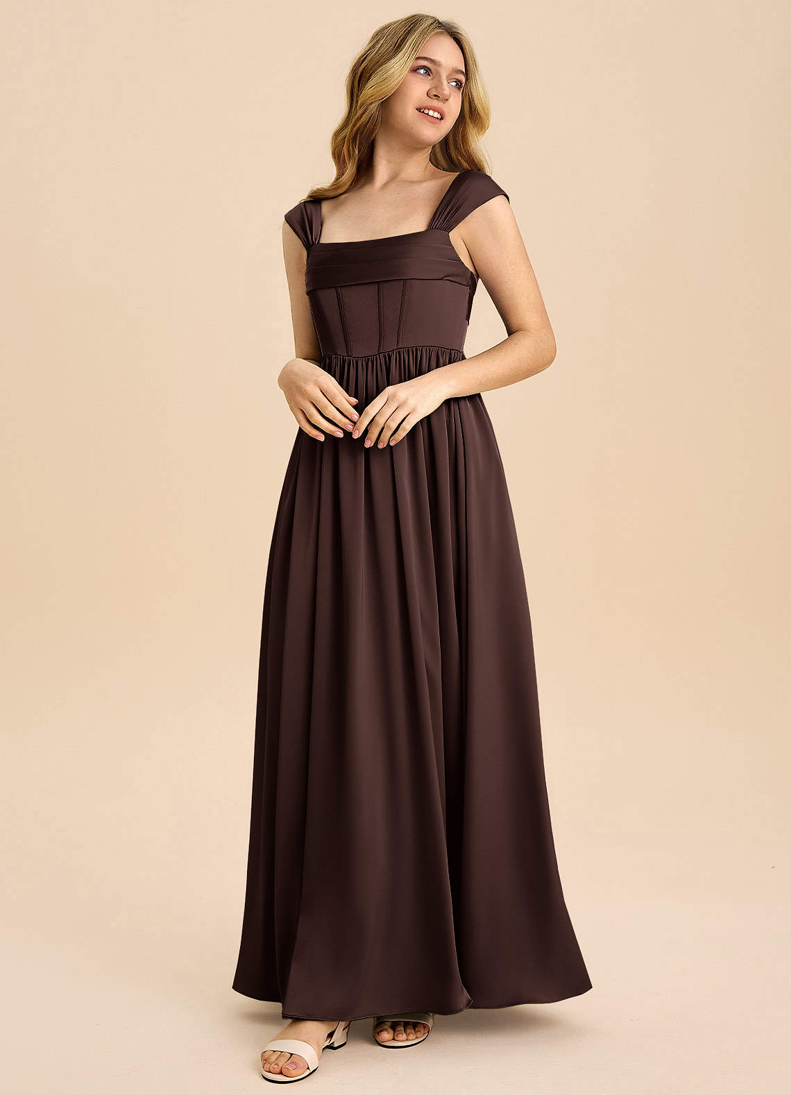 Linia A Pofałdowany Satyna elastyczna Długość podłogi Młodsza druhna Sukienka